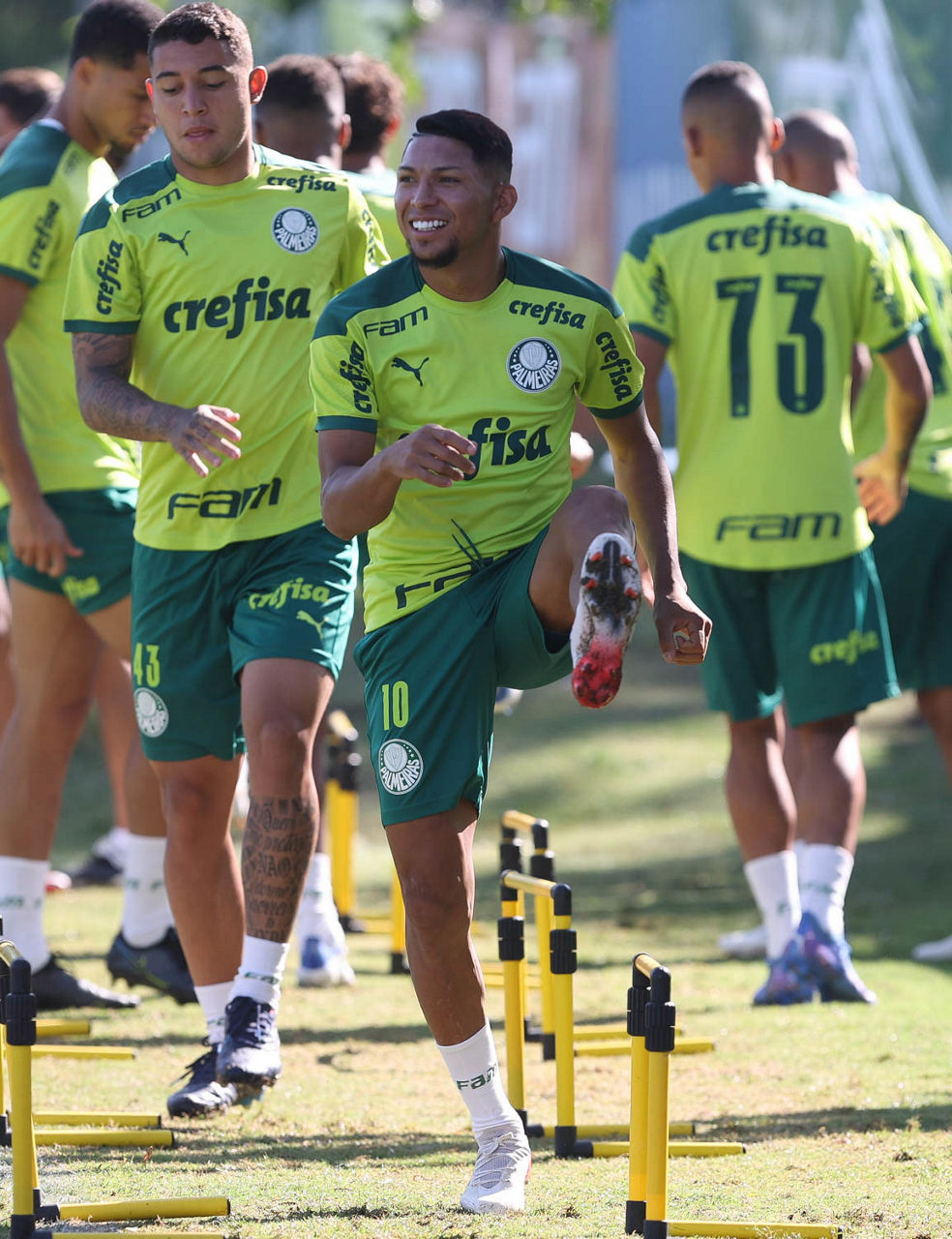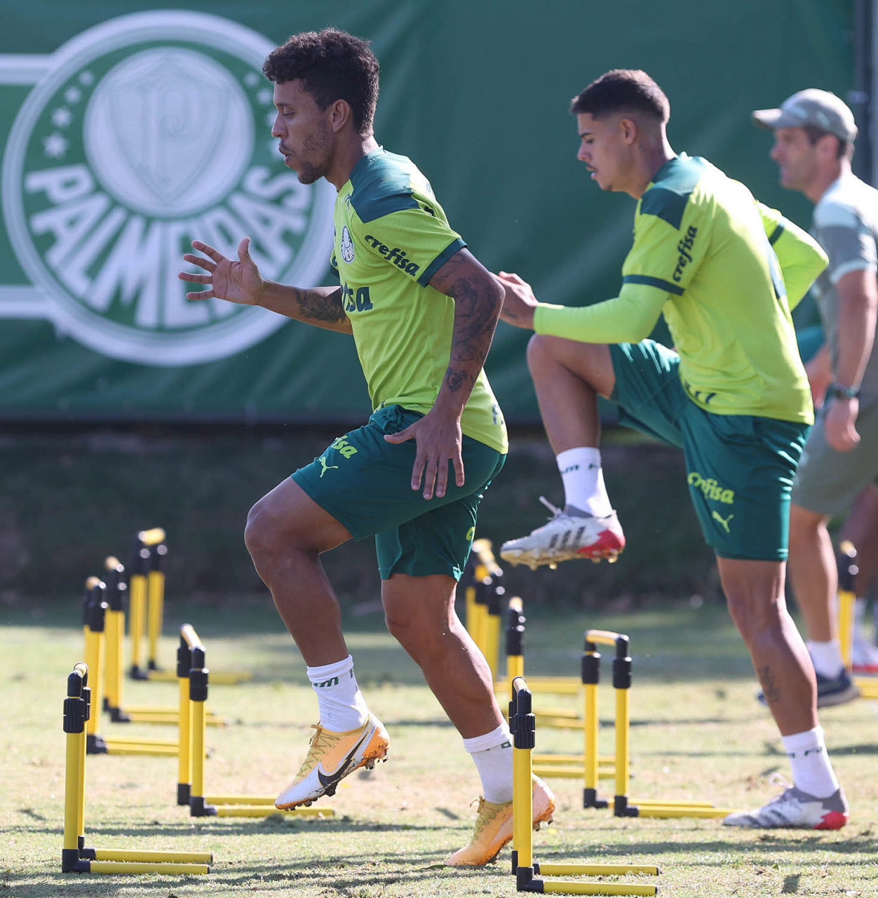 Na sequência, os titulares da vitória por 3 a 0 sobre o Corinthians no sábado (23), pelo Campeonato Brasileiro, fizeram complemento físico pelo desgaste acumulado e foram liberados, enquanto os demais atletas palestrinos colocaram em prática outro treino técnico, desta vez com a presença dos arqueiros.