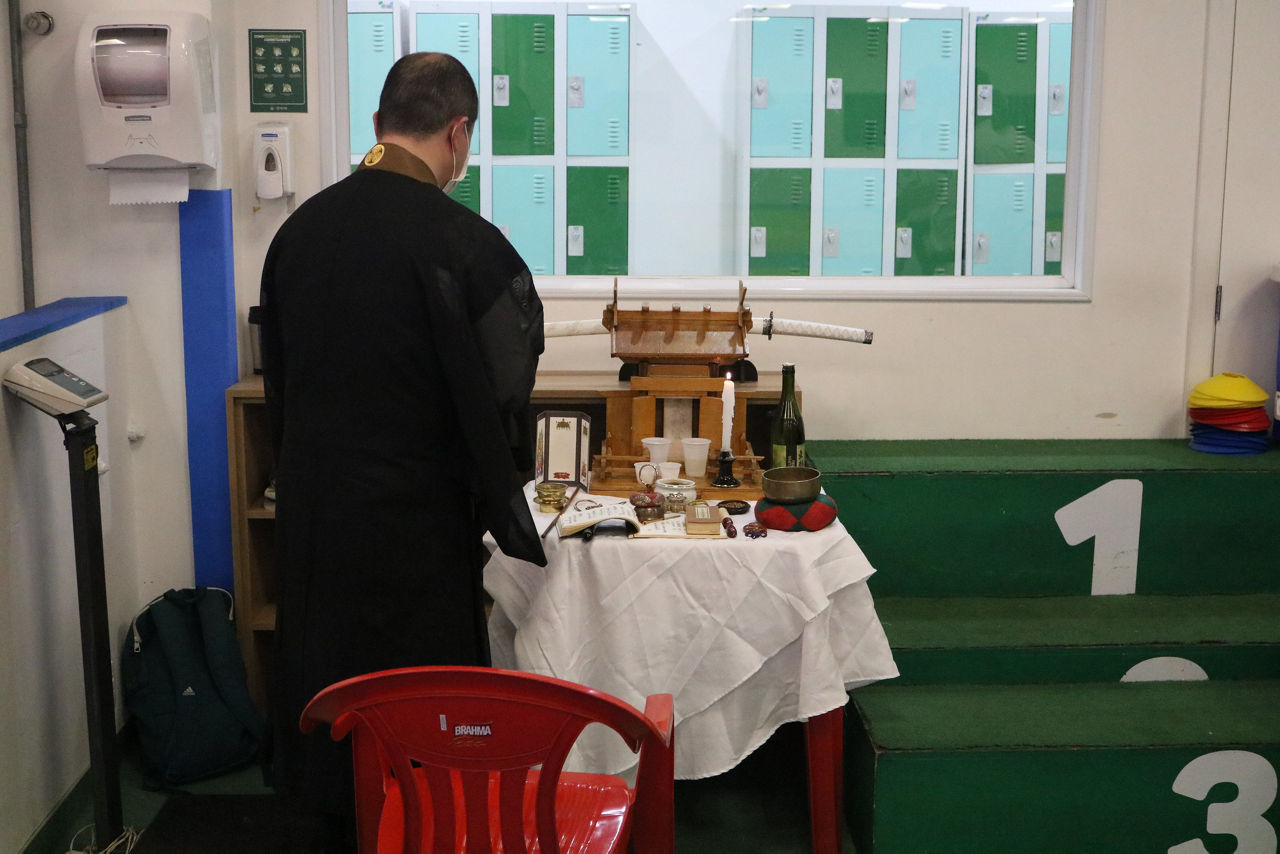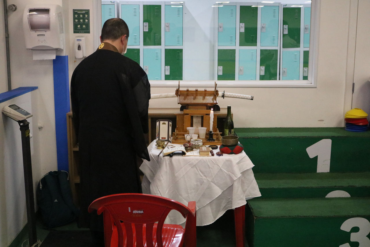O Palmeiras recebeu, na noite da última quarta-feira (08), a visita do monge budista Kanno Nobutaka para uma cerimônia de proteção à sala de artes marciais do clube, localizada no 2° andar do Prédio Multiuso, no clube social. O local, que é palco das aulas e treinos de judô e karate, recebeu recentemente a instalação de um santuário, que está localizado ao meio da sala.