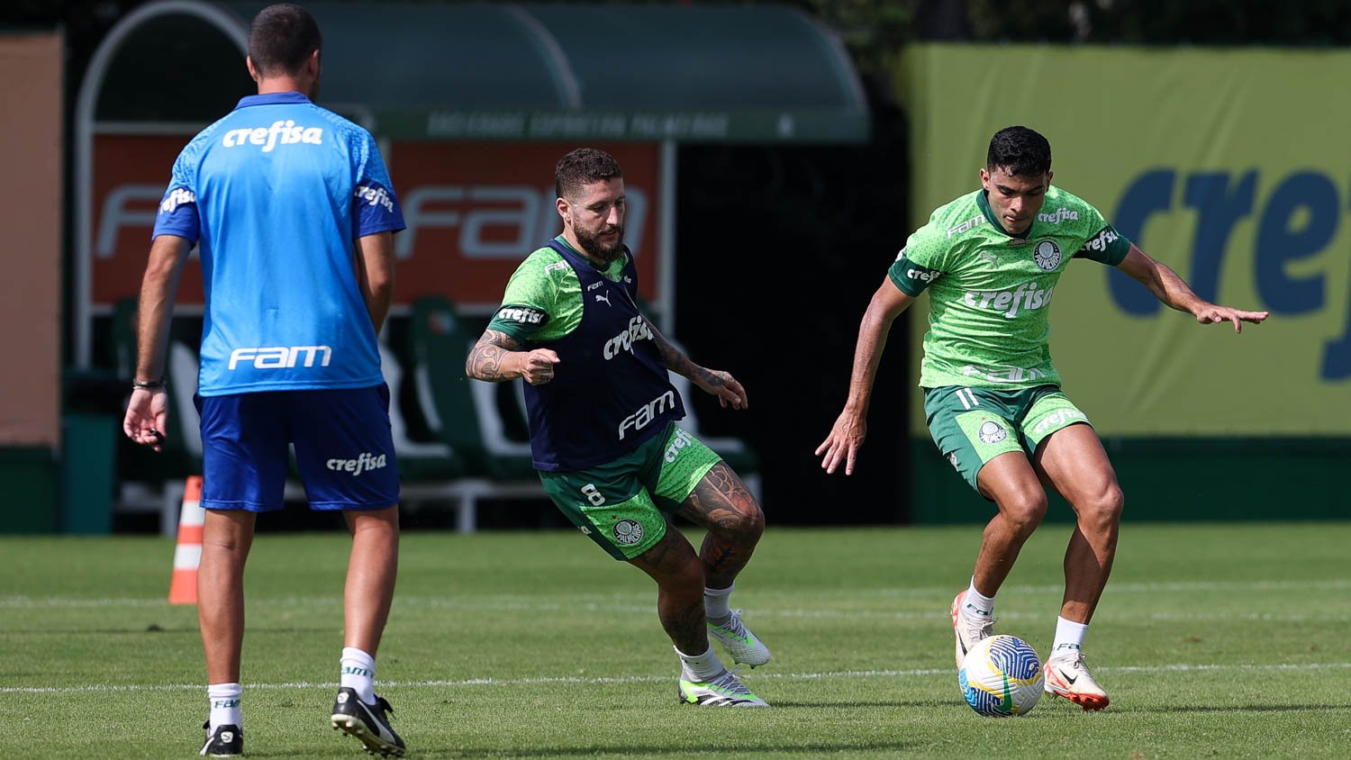 O Palmeiras treinou na manhã desta segunda-feira (20), na Academia de Futebol, em preparação ao duelo com o Botafogo-SP, na quinta (23), às 19h, no Estádio Santa Cruz, em Ribeirão Preto (SP), pela terceira fase da Copa do Brasil. Após ativação física no centro de excelência, os jogadores foram a campo e fizeram trabalhos técnicos. No primeiro, os atletas de linha realizaram um treino com objetivos específicos de aproximação e marcação. Na sequência, o elenco foi dividido em três times de nove componentes: enquanto um tinha como meta chegar ao gol, o outro se defendia e tinha de passar pelo meio de campo. Quem vencia, enfrentava a equipe fora e assim sucessivamente.