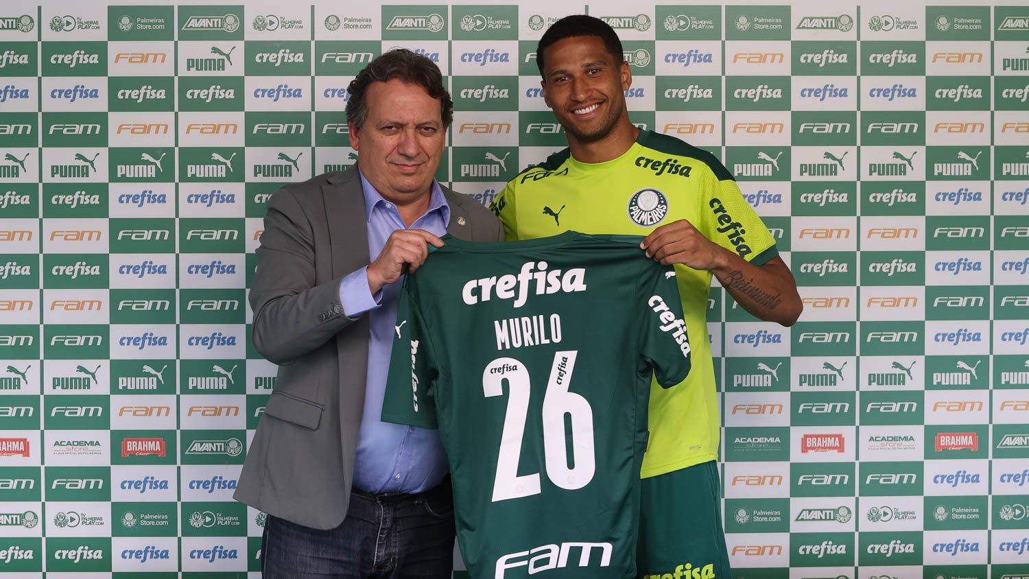 Contratado junto ao Lokomotiv Moscou, da Rússia, o zagueiro Murilo foi apresentado oficialmente nesta terça-feira (18), na sala de imprensa da Academia de Futebol. O defensor, que assinou contrato válido até o fim de 2026, recebeu o manto do Verdão das mãos do vice-presidente Paulo Buosi. Realizado, o novo camisa 26 do clube celebrou a oportunidade de jogar pelo Maior Campeão do Brasil.