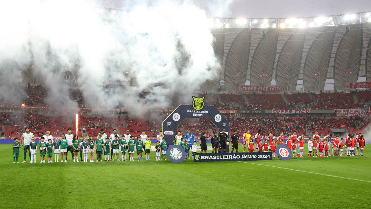 Pelo Campeonato Brasileiro, o Palmeiras empatou com o Internacional em 1 a 1, neste domingo (04), no Estádio Beira-Rio, em Porto Alegre-RS. Bruno Henrique marcou para equipe gaúcha no primeiro tempo e Rony deixou tudo igual aos 43 minutos da segunda etapa. Com o resultado, o Verdão soma 37 pontos conquistados e ocupa o terceiro lugar na classificação, podendo ser superado por Fortaleza ou Cruzeiro, que fecham a 21ª rodada da competição nacional na segunda-feira (05).