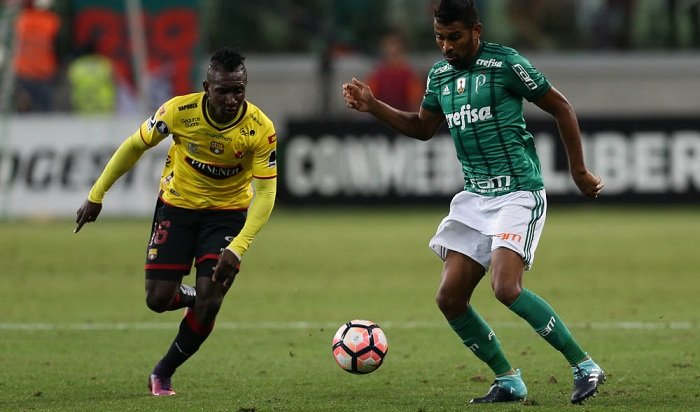 Uma das características do Verdão ao longo do primeiro tempo do embate diante da equipe equatoriana foi a raça. O time de Cuca não deixou de acreditar em nenhuma jogada sequer, e os jogadores correspondiam ao apoio da torcida a cada lance, pressionando a saída de bola adversária e mantendo o jogo no campo de ataque. Além disso, a posse de bola também foi valorizada pelo time da casa.