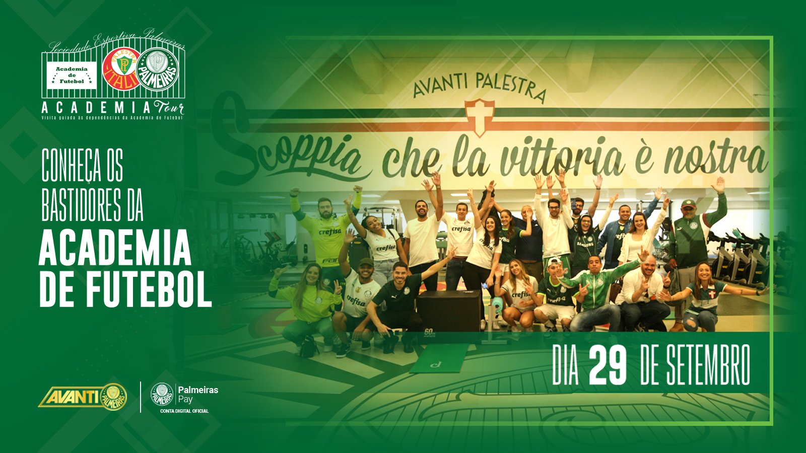 A Palmeiras Experiências, plataforma de produtos exclusivos do clube, disponibilizou uma nova data para o Academia Tour: no dia 29 de setembro (domingo), das 09h às 17h, os torcedores terão a oportunidade de conhecer todos os bastidores da Academia de Futebol, que possui uma estrutura digna dos maiores clubes de futebol do mundo. Os ingressos estão à venda pelo site www.palmeirasexperiencias.com.br, com desconto especial para sócios-torcedores Avanti.