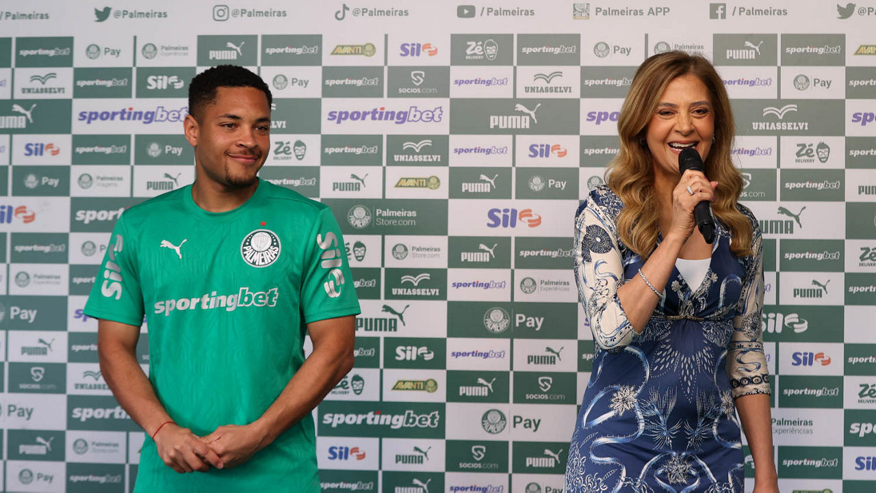 “Estou muito feliz por estar aqui. Agradeço ao Palmeiras e à presidente (Leila Pereira) também. Estou muito feliz desde o primeiro dia. Foi uma negociação difícil, passei dias nervoso e ansioso, mas, graças a Deus, deu tudo certo. A minha vontade era sim ou sim desde que apareceu a oportunidade”, disse. “É um orgulho vestir a camisa do Palmeiras, além da camisa 9”, completou o jovem de 20 anos.