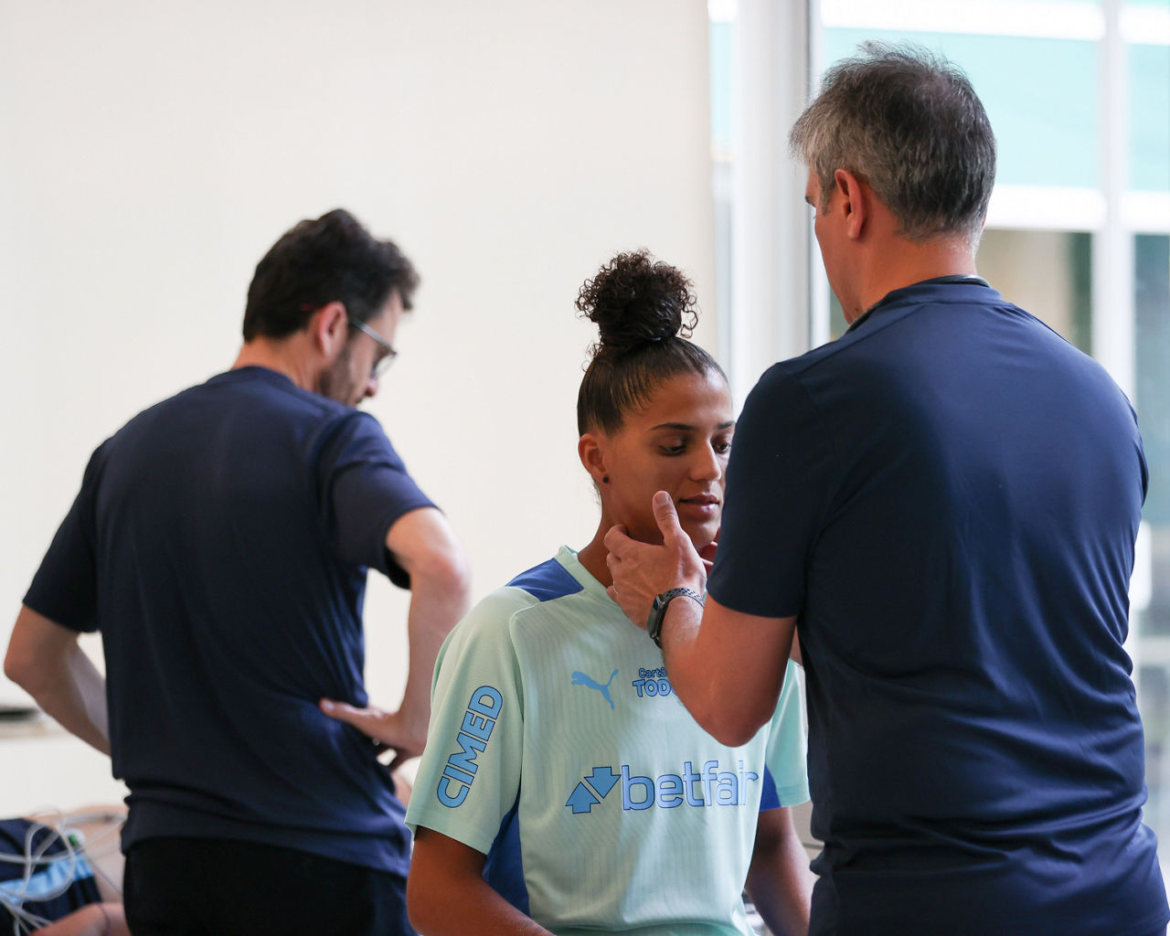 As atletas foram divididas em seis grupos para realizarem os seguintes exames: eletrocardiograma; ecocardiograma; ergoespirometria; avaliação ortopédica, fisioterápica e nutricional. “Aproveitamos o dia de hoje para realizar exames médicos e avaliações. A partir de amanhã, vamos contar com todas as atletas no campo para o professor Ricardo Belli fazer o primeiro treino”, disse Fabio.