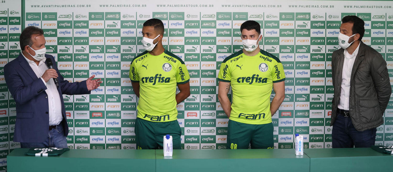 Contratados em julho, os jogadores Jorge e Joaquín Piquerez foram apresentados oficialmente pelo vice-presidente Paulo Buosi e o assessor de futebol Edu Dracena nesta quarta-feira (04), na Academia de Futebol. Laterais-esquerdo de origem, os reforços mostraram enorme satisfação pela oportunidade de atuar pelo Maior Campeão do Brasil. Os dois atletas firmaram vínculo até dezembro de 2025.