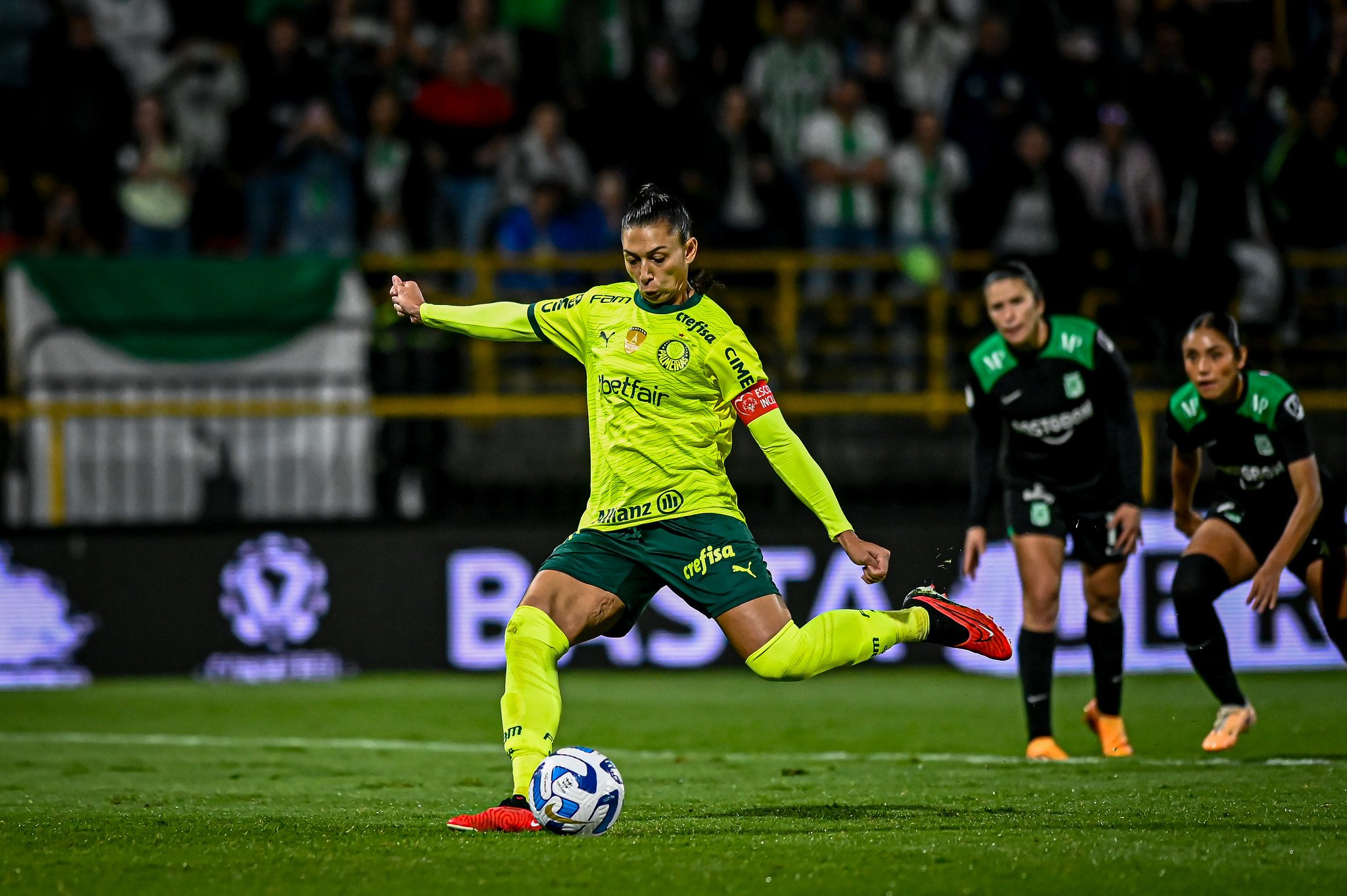 Era a noite do Palestra! Aos 22 minutos, Amanda Gutierres cabeceou para as redes, após receber cruzamento perfeito na área e fez o terceiro gol palestrino da semifinal. Com 31 minutos, as adversárias diminuíram com Daniela Montoya. Atacando e se defendendo bem, o placar terminou em 3 a 1 para as Palestrinas.