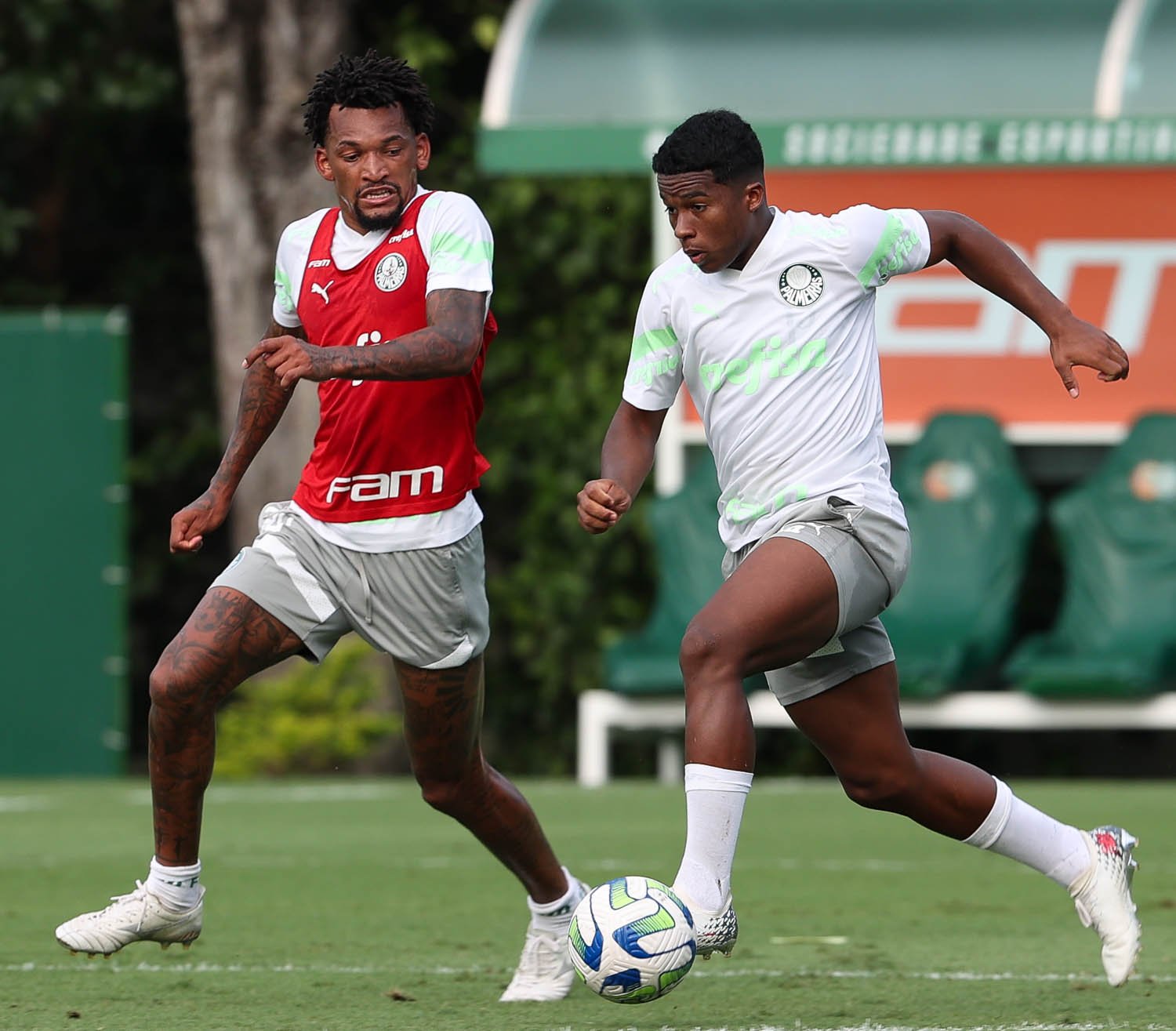 O meio-campista Atuesta deu sequência ao processo de transição física, enquanto o atacante Dudu fez tratamento no com o Núcleo de Saúde e Performance. O Verdão volta a treinar neste sábado (07), às 16h. O Alviverde é o atual quarto colocado do Brasileirão com 44 pontos. No primeiro turno, no estádio da Vila Belmiro, o embate terminou 0 a 0.