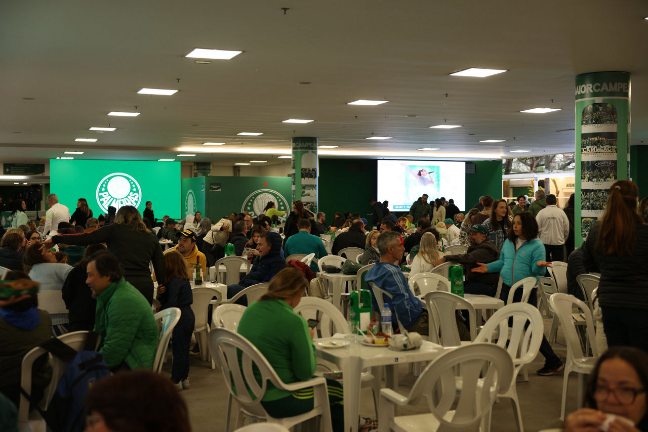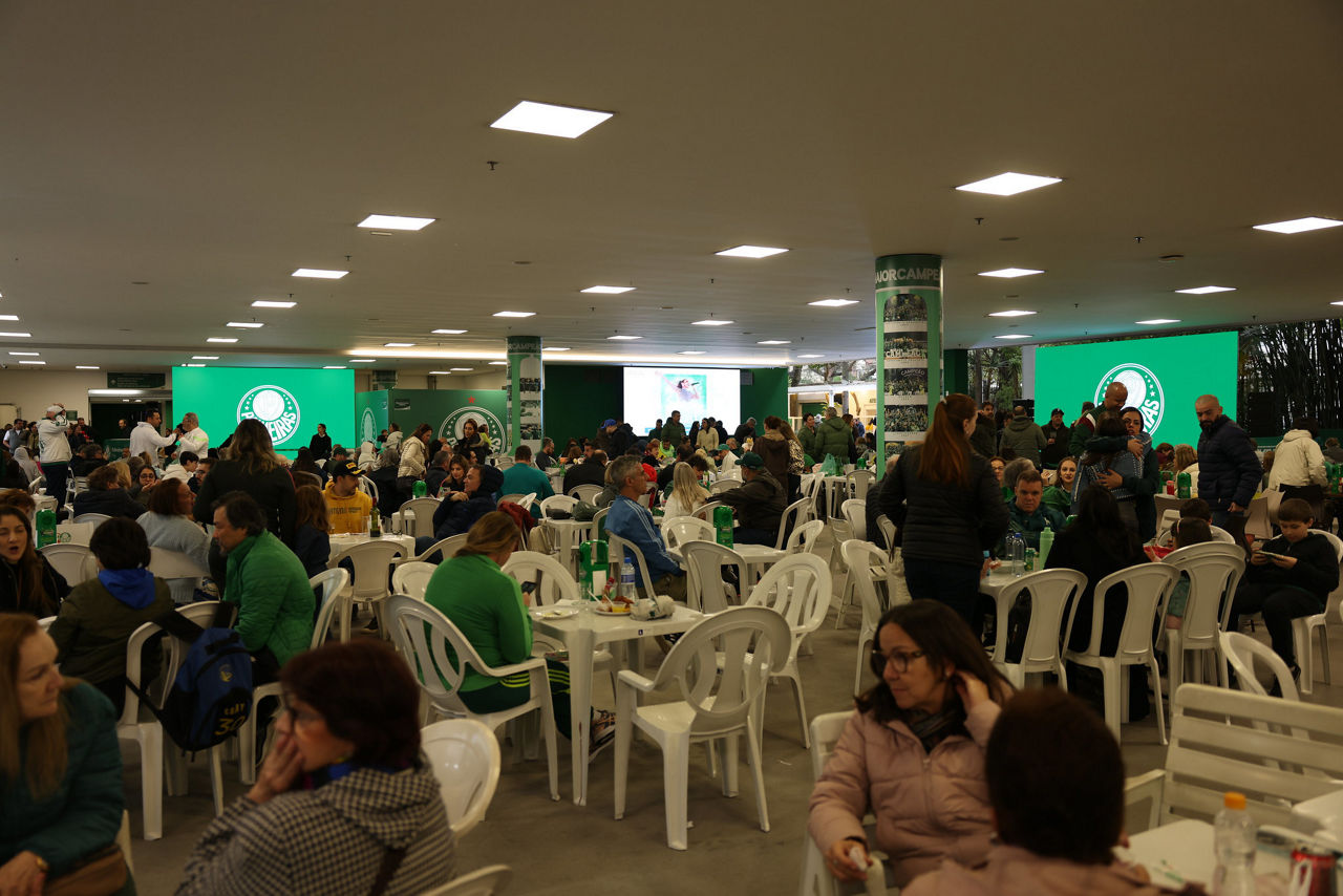 O lado de fora do ginásio também era de pura animação. A transmissão ao vivo em três telões montados no saguão principal e na parede Tríplice Coroa permitiu que quem circulasse pelo clube também pudesse acompanhar cada momento do show. Foram criados ainda pontos de alimentação com churrasco, hambúrguer e batata frita.