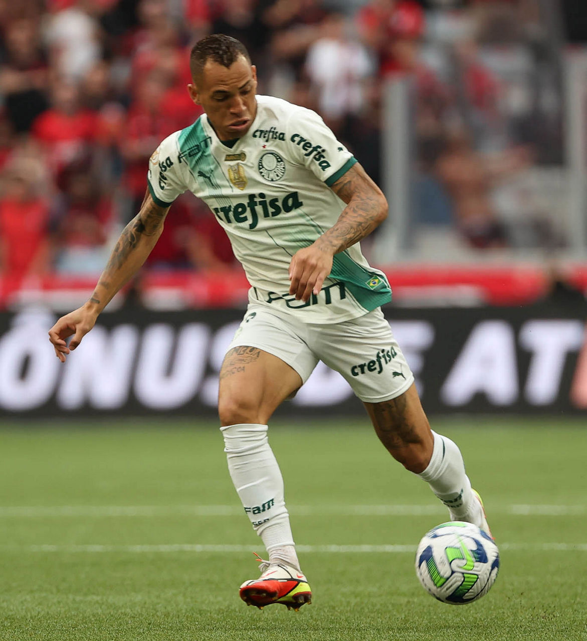 O início do duelo com o Athletico-PR começou eletrizante. Logo nos minutos iniciais do jogo, o Palmeiras teve um pênalti marcado a seu favor após o atacante Endrick ser atingido com o cotovelo dentro da grande área. O jovem atleta foi o responsável pela cobrança, mas não obteve sucesso. Minutos depois, porém, o camisa 9 abriu o placar da partida após um ótimo cruzamento de Breno Lopes. Na etapa final, o Alviverde conseguiu ampliar o marcador com Gabriel Menino, que havia acabado de sair do banco de reservas. Dez minutos depois, mais um pênalti foi marcado, desta vez para o Athletico-PR – após receber o segundo amarelo no lance, Gustavo Garcia foi expulso. O rival paranaense converteu a penalidade máxima e, cinco minutos depois, empatou o jogo. O confronto permaneceu empatado até o apito final.