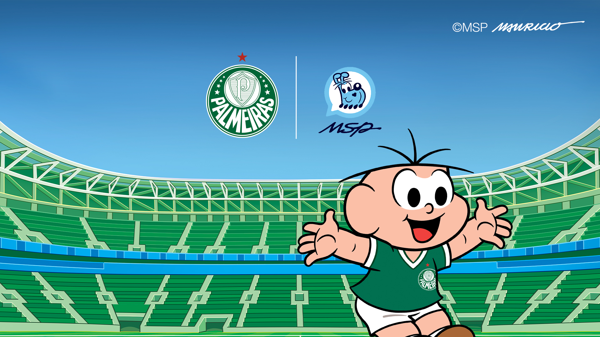 A iniciativa faz parte da comemoração do Dia das Crianças e nasceu da parceria entre o Palmeiras, a MSP Estúdios e a Garoa Livros, editora que neste ano lançou “Cebolinha – Um Dia de Palmeiras”. A obra inspira os pequenos torcedores palmeirenses ao contar a história do Verdão por meio de uma visita inesquecível do personagem com seu pai (seu Cebola) e o avô (Eustáquio Cebolão) no Allianz Parque.