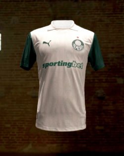 A camisa HOME apresenta gola em formato “V”, mais grossa, oferecendo um visual retrô. Chega na cor verde tradicional do Palmeiras, com gola e acabamento das mangas na cor branca. A camisa AWAY é tradicionalmente branca, com acabamento em verde e apresenta gola polo. Ambas trazem a frase “De fato é campeão” na parte interna da gola.