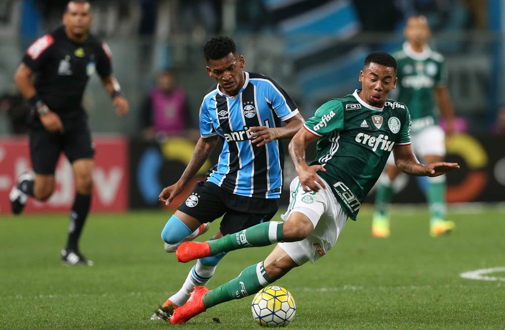 Os alviverdes voltaram a assustar aos 20. Dudu cobrou falta pelo alto, Gabriel Jesus desviou de cabeça e Moisés finalizou na pequena área, mas foi travado pela zaga gremista.