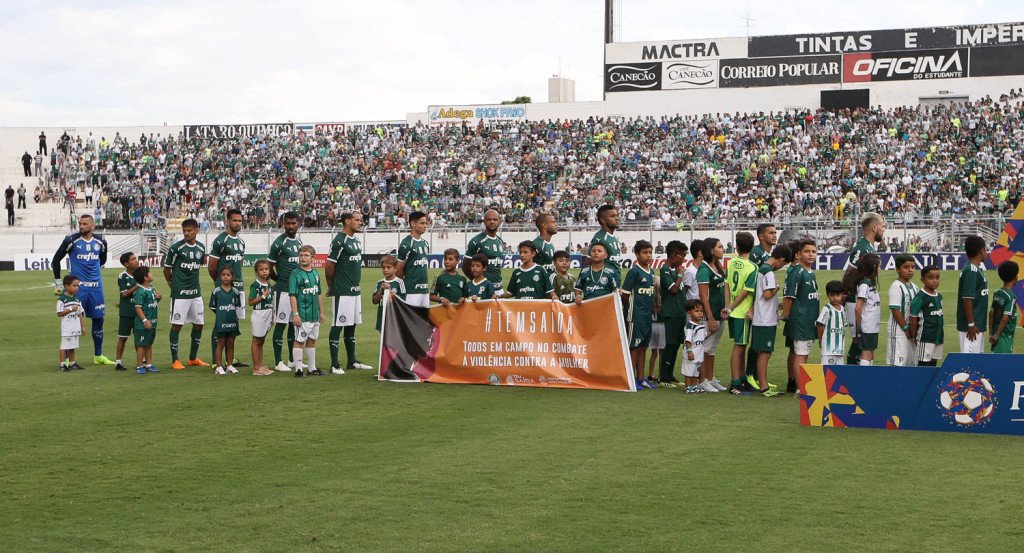 Em uma parceria com a Prefeitura de São Paulo, o elenco palestrino entrou em campo segurando uma faixa com a hashtag #TemSaída. Na última quinta-feira (17), Palmeiras, Corinthians e São Paulo divulgaram um manifesto de apoio e assinaram acordo para participação no programa municipal, que tem como objetivo oferecer autonomia financeira, por meio de geração de emprego, às mulheres vítimas de violência doméstica. Para mais informações, basta acessar www.prefeitura.sp.gov.br/desenvolvimento, ligar para SP156 ou mandar e-mail para temsaida@prefeitura.sp.gov.br.