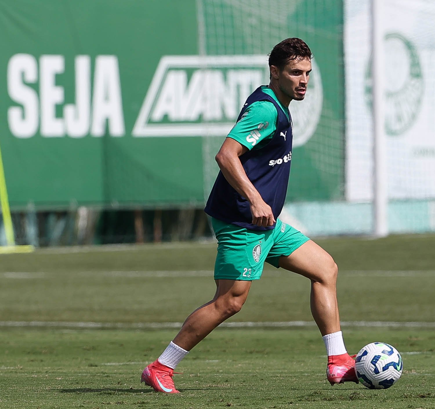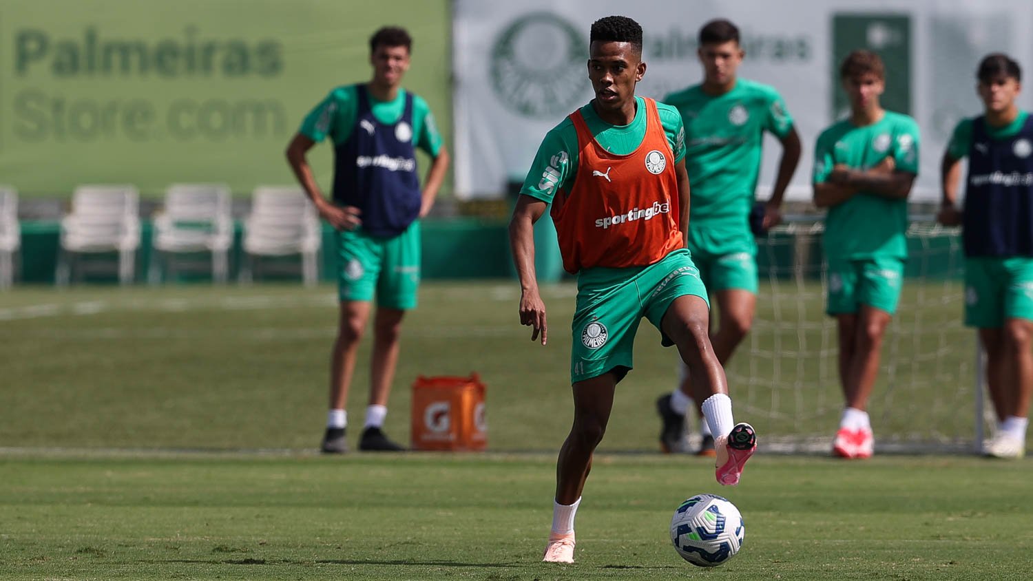 A comissão ensaiou bolas paradas ofensivas e defensivas e comandou um trabalho técnico em campo reduzido. Em transição física, os laterais-direitos Mayke e Marcos Rocha e o meio-campista Raphael Veiga participaram do treino com o elenco no gramado.