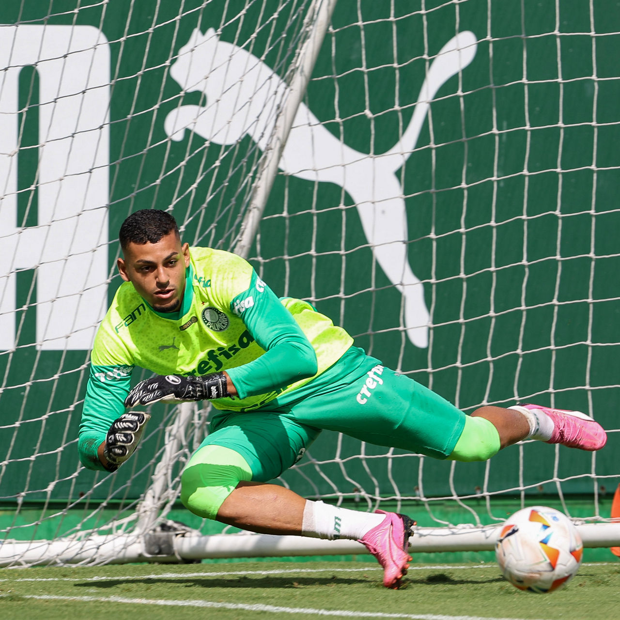 O lateral-esquerdo Vanderlan durante treinamento na Academia de Futebol (Foto: Cesar Greco/Palmeiras/by Canon)