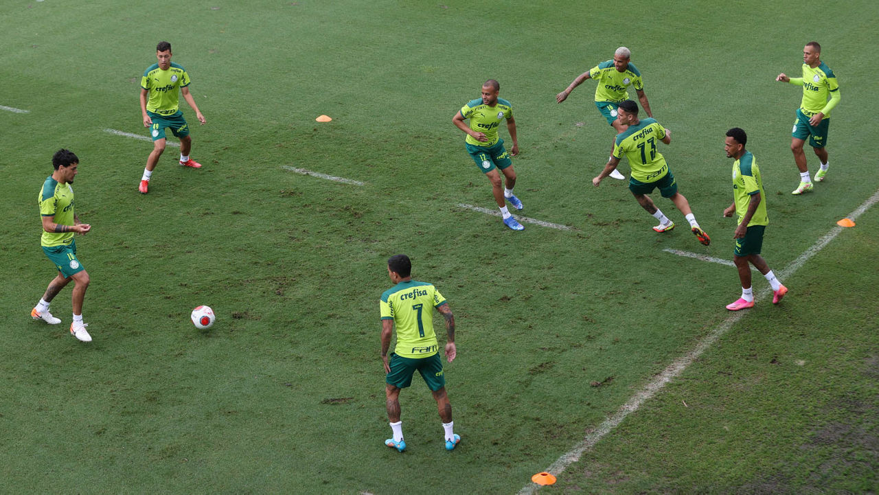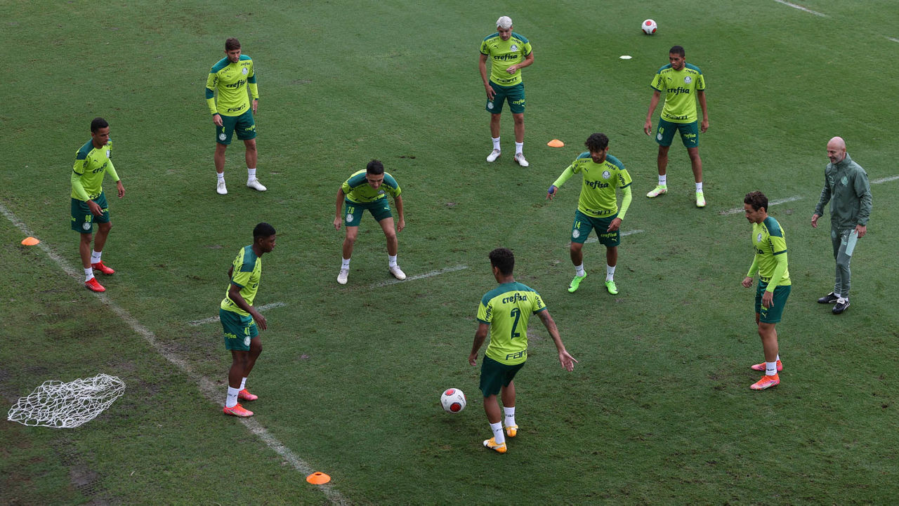 O Palmeiras treinou na tarde desta terça-feira (11), na Academia de Futebol, e encerrou o dia de atividades em dois períodos com trabalhos distintos para os setores ofensivo e defensivo. Assim como nas atividades táticas da manhã, Patrick de Paula, Gustavo Scarpa, Breno Lopes, Deyverson e Rafael Navarro treinaram junto ao grupo após recuperarem-se da Covid-19.