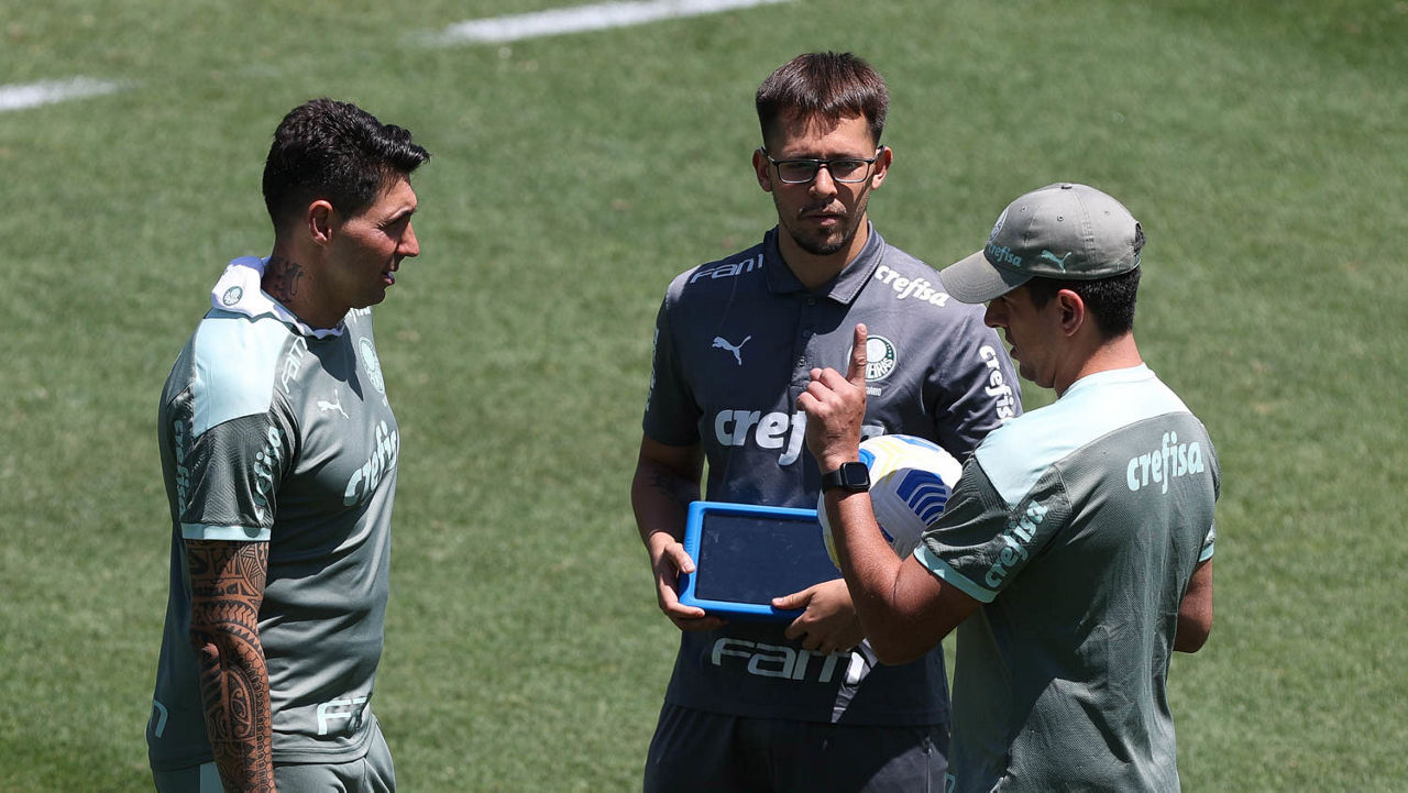 A comissão de Abel Ferreira comandou, a princípio, uma atividade técnica em dimensões reduzidas com permissão de poucos toques na bola por atleta. Na sequência, um time aprimorou transições, simulações de jogo e jogadas específicas ofensivas com o auxiliar Vitor Castanheira, ao passo que, do outro lado do campo, o restante dos jogadores aperfeiçoou bolas paradas, tanto os atacantes quanto os zagueiros.
