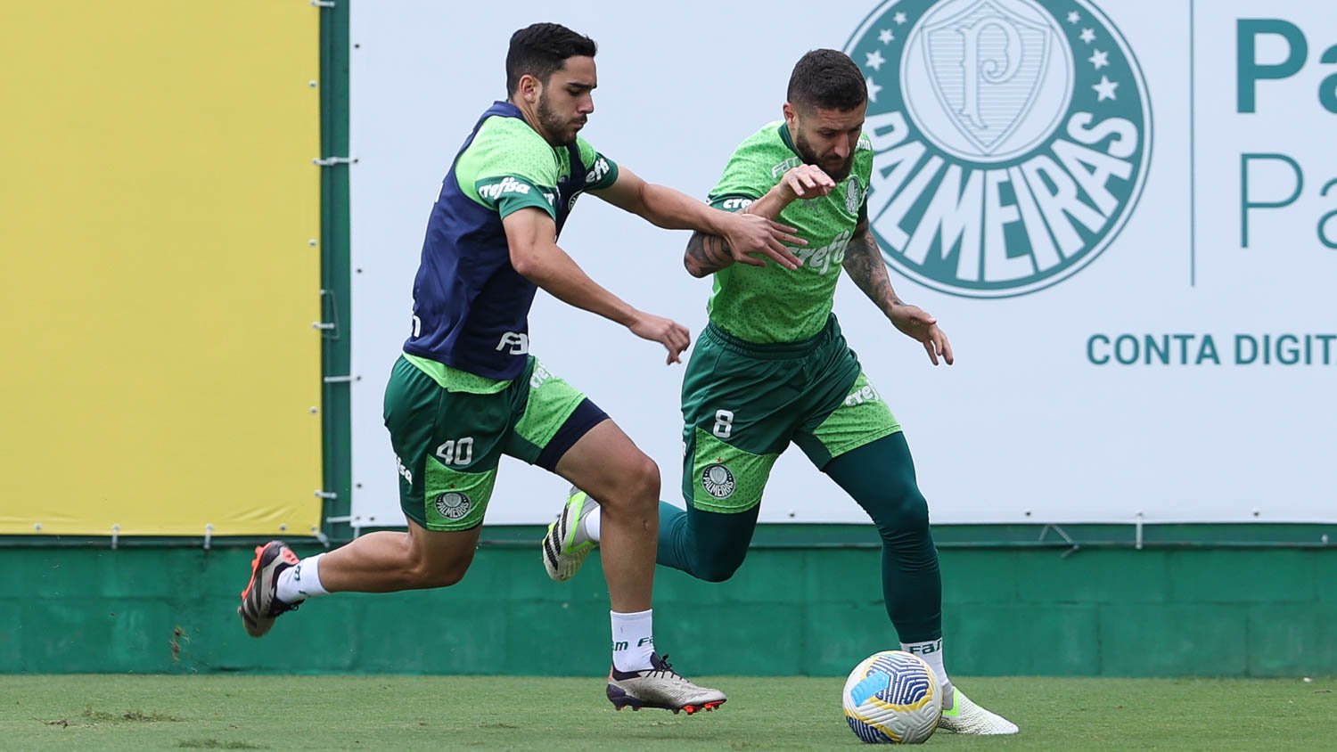 Figueiredo e Zé Rafael (D) durante treinamento (Foto: Cesar Greco/Palmeiras/by Canon)
