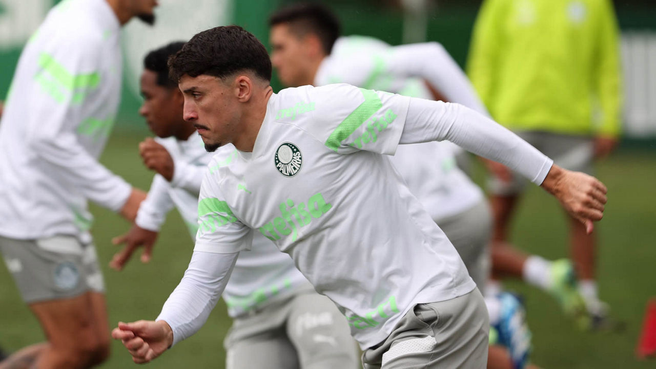 Piquerez participou do treino deste sábado (25) com o elenco (Foto: Cesar Greco/Palmeiras/by Canon)