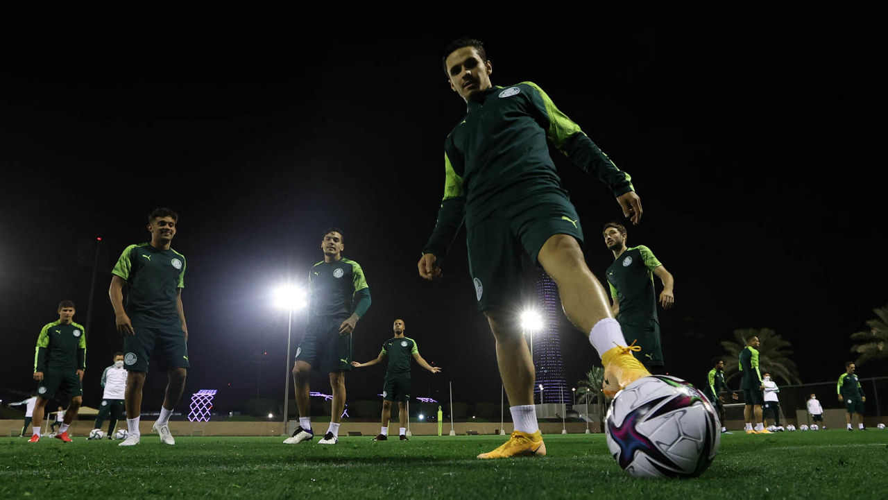 O Verdão realizou na noite deste sábado (06), em um dos campos da Aspire Academy, em Doha, no Catar, mais um treino visando o confronto com o Tigres-MEX, no domingo, às 15h (de Brasília), no Estádio Education City, pela semifinal da Copa do Mundo de Clubes da FIFA.