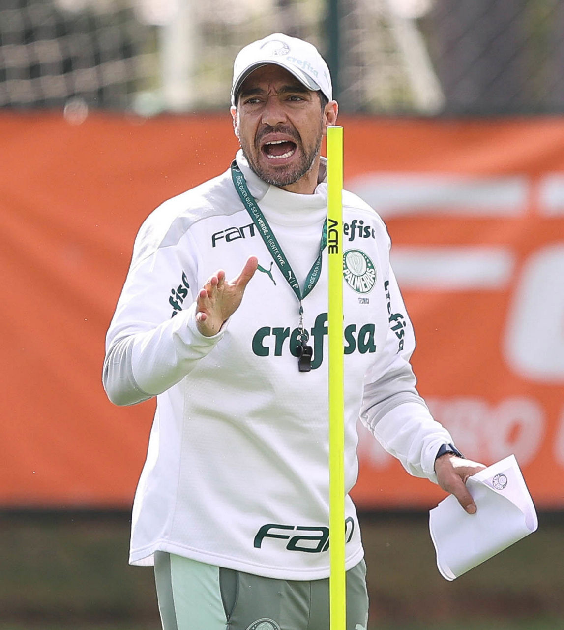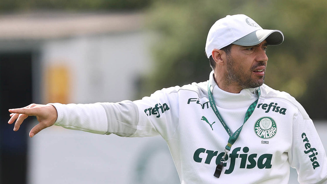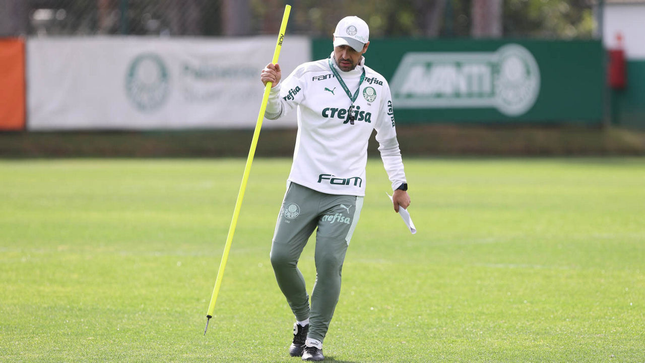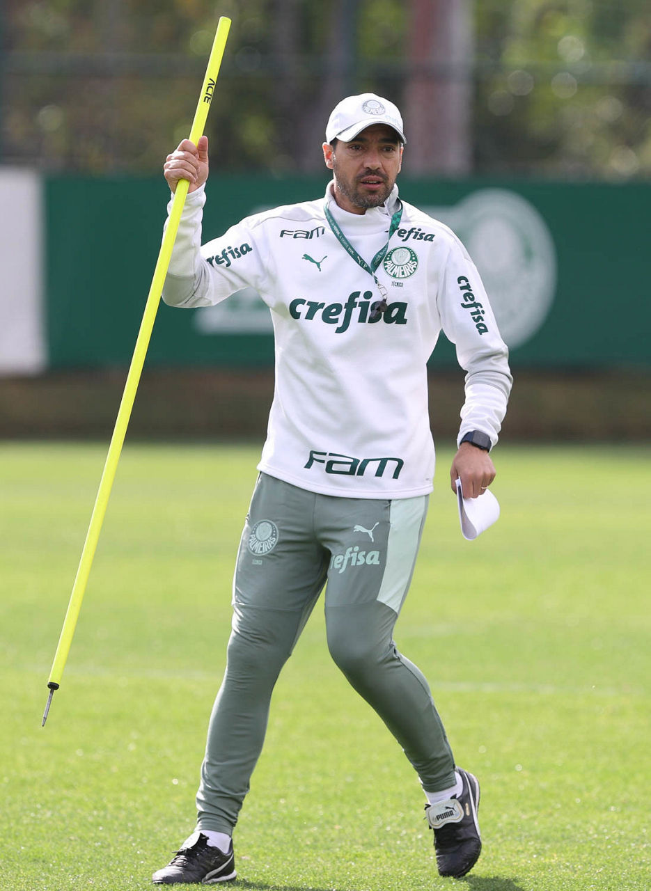 O técnico Abel Ferreira e sua comissão comandaram um treino posicional seguido de atividade tática com dimensões reduzidas (Foto: Cesar Greco/Palmeiras)