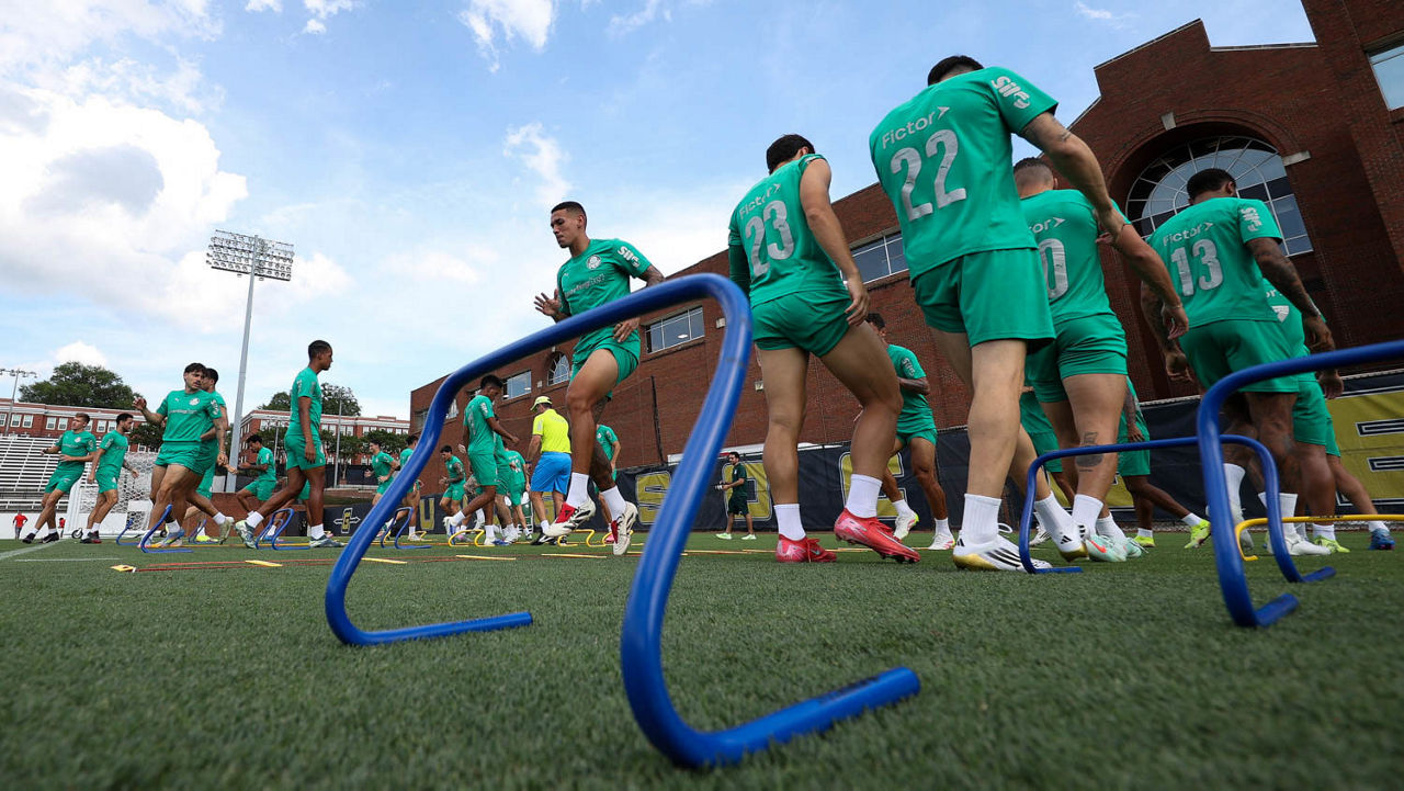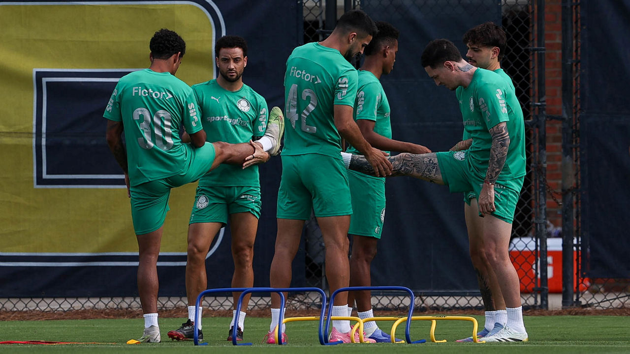 O Palmeiras deu sequência nesta terça-feira (17), na Universidade da Carolina do Norte, em Greensboro (EUA), à preparação para o confronto com o Al Ahly-EGI, na quinta (19), às 13h (horário de Brasília), no MetLife Stadium, em Nova Jersey (EUA), pela segunda rodada da fase de grupos da Copa do Mundo de Clubes da Fifa 2025. Pela manhã, após exibição de vídeo e ativação muscular, os jogadores foram a campo e aprimoraram questões táticas como transições defensivas e ofensivas e movimentações específicas. À tarde, o elenco ensaiou mais conceitos táticos e realizou simulações de jogo. Na sequência, alguns atletas aprimoraram ainda cobranças de faltas e pênaltis.
