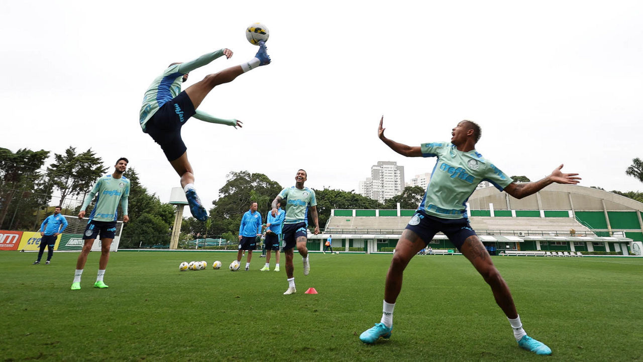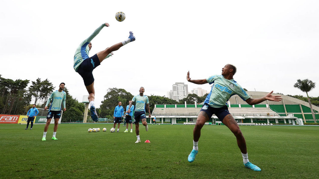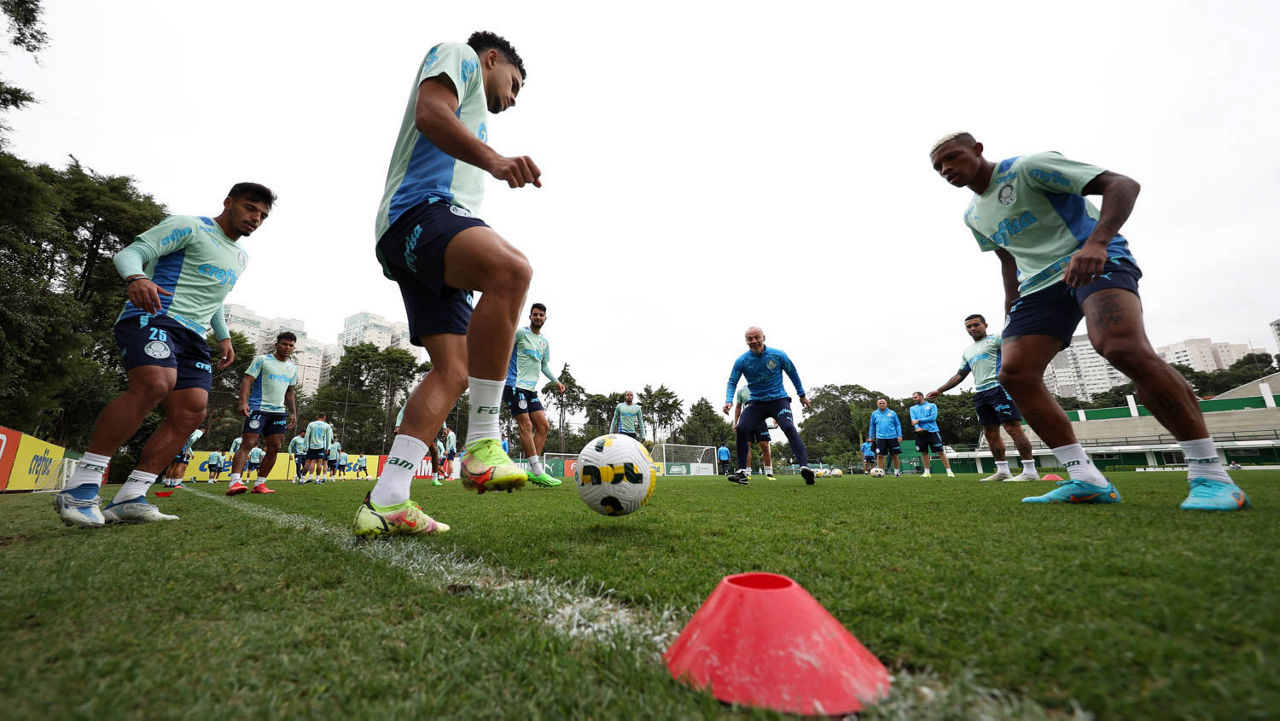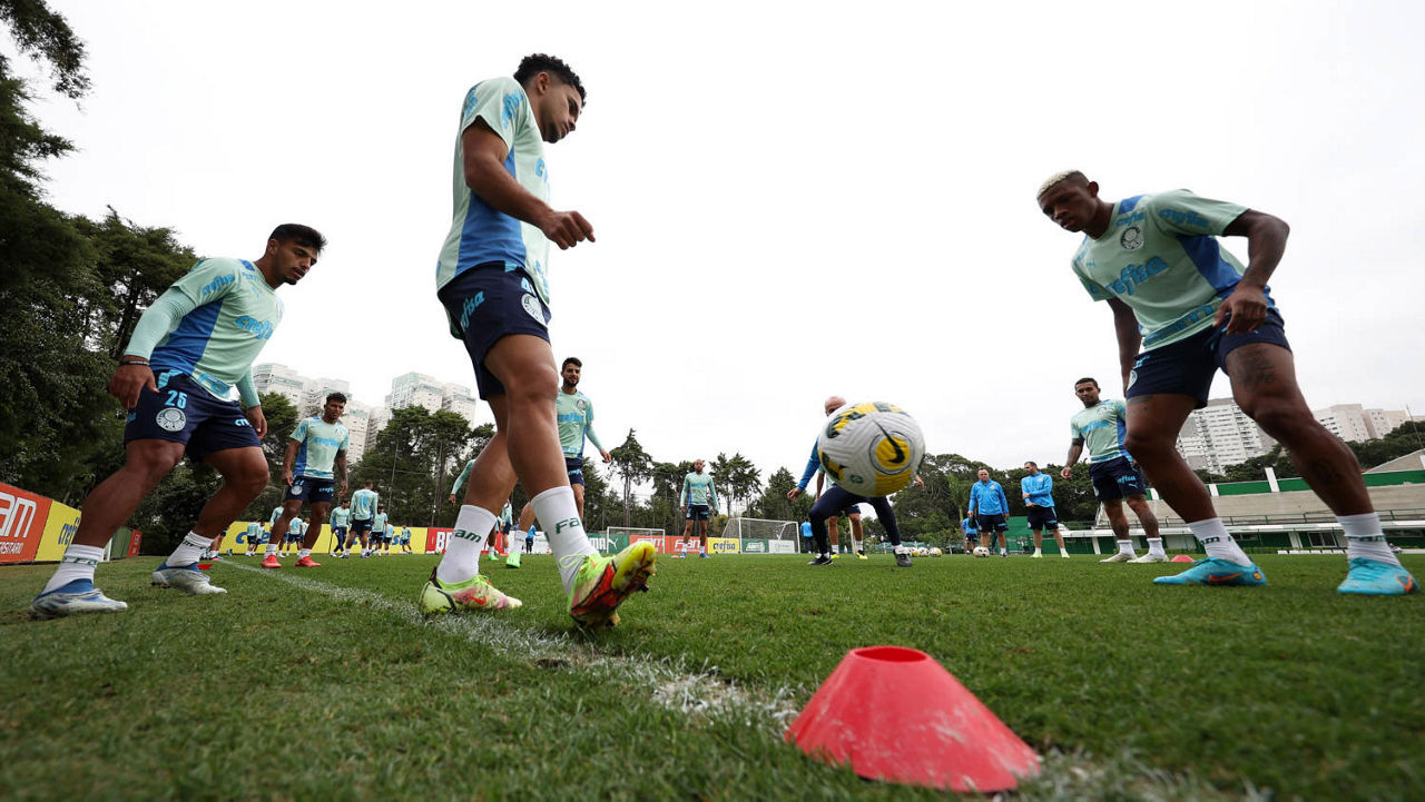 O Palmeiras treinou na manhã desta quarta-feira (13), na Academia de Futebol, em sequência à preparação para o confronto decisivo com o São Paulo, nesta quinta-feira (14), às 20h, no Allianz Parque, pelo jogo de volta das oitavas de final da Copa do Brasil. O técnico Abel Ferreira comandou mais de 1h de atividades táticas. Com duas equipes divididas no gramado, orientou posicionamento, movimentações e jogadas preparadas para o clássico. Na sequência, os jogadores praticaram cobranças de pênaltis.