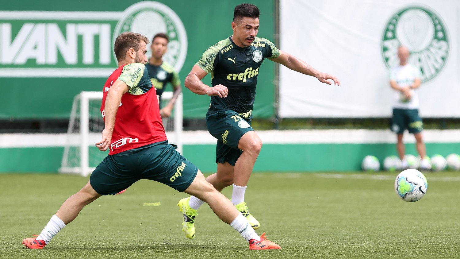 O técnico Abel Ferreira separou duas equipes no gramado sintético do centro de treinamento e comandou um treino tático visando o duelo pelo Brasileirão e também os jogos finais da Copa do Brasil. O treinador orientou posicionamento, movimentações e transições, entre outros aspectos e fundamentos do jogo.