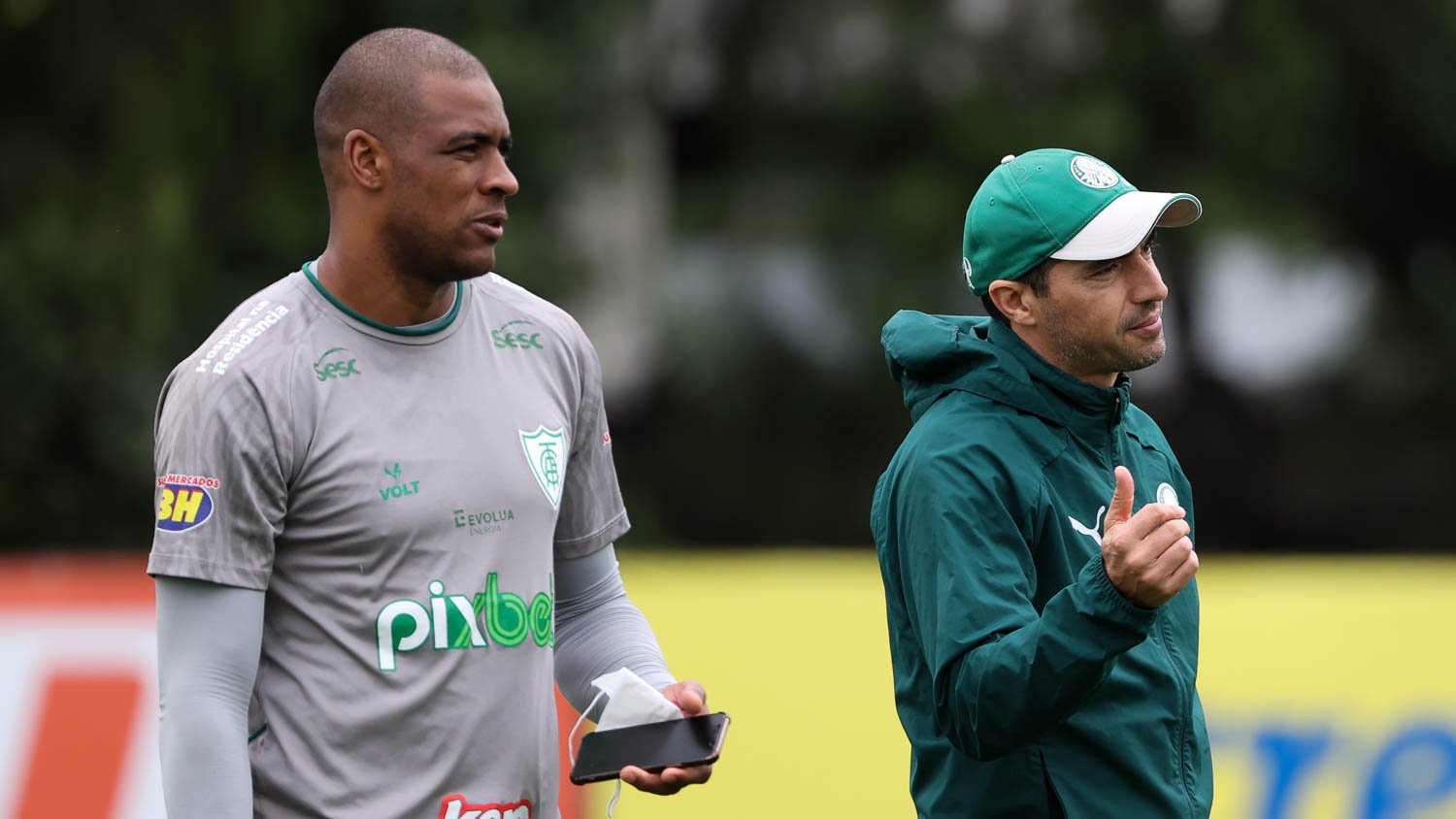 Um pouco antes do treino do Verdão no campo 1, o América-MG treinou no campo 3 em preparação ao duelo com o São Paulo, no domingo (12), no Morumbi. O lateral-esquerdo João Paulo, que vestiu a camisa palestrina em 2015, e o goleiro Jailson, multicampeão pelo clube, reviram e cumprimentaram ex-companheiros e funcionários do clube.