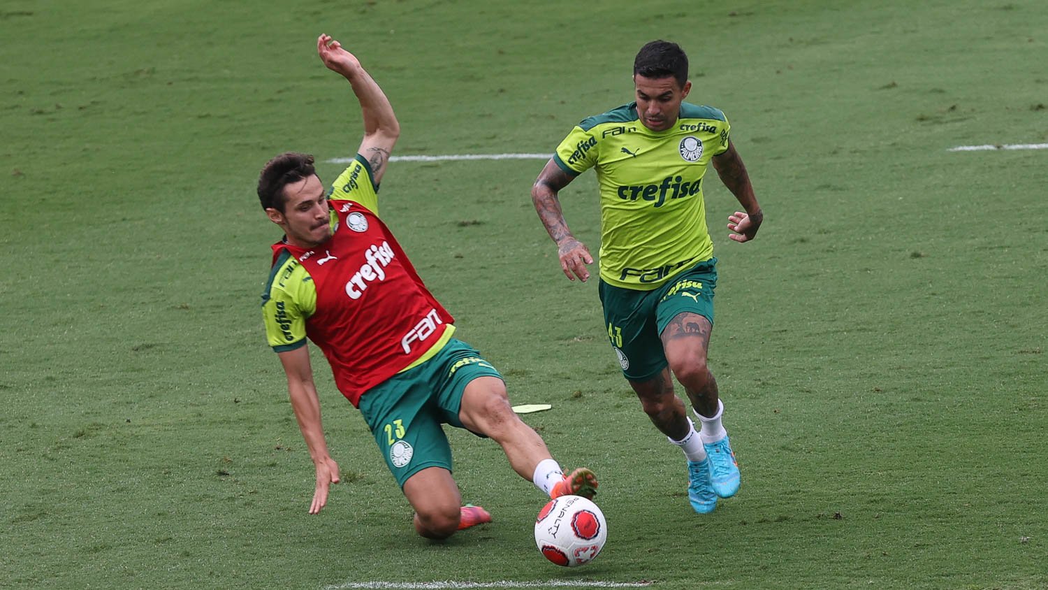 Após ter feito movimentações físicas e técnicas pela manhã, o Palmeiras completou a quinta-feira (06) de dois períodos na Academia de Futebol com uma atividade no gramado comandada pela comissão técnica de Abel Ferreira.