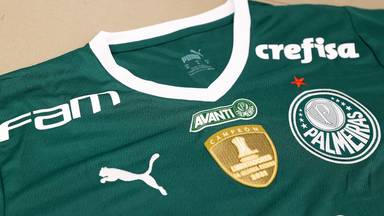 O logo do Avanti ficará entre os símbolos do Verdão e da PUMA, logo acima do patch de campeão da Libertadores 2021 (Fabio Menotti/Divulgação)