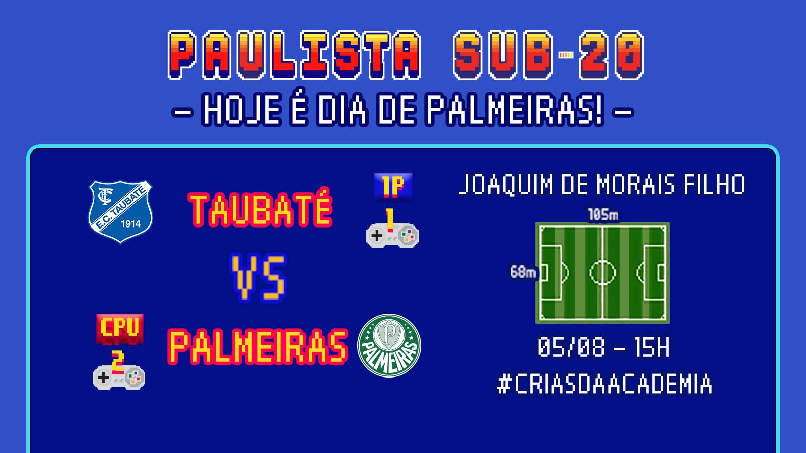 O time Sub-20 do Palmeiras estreia no Campeonato Paulista da categoria nesta quinta-feira (05), às 15h, contra o Taubaté, no estádio Joaquim de Morais Filho, em Taubaté-SP. A partida será transmitida pela FPF TV (elevensports.com) e exibida na home do Site Oficial do Verdão.