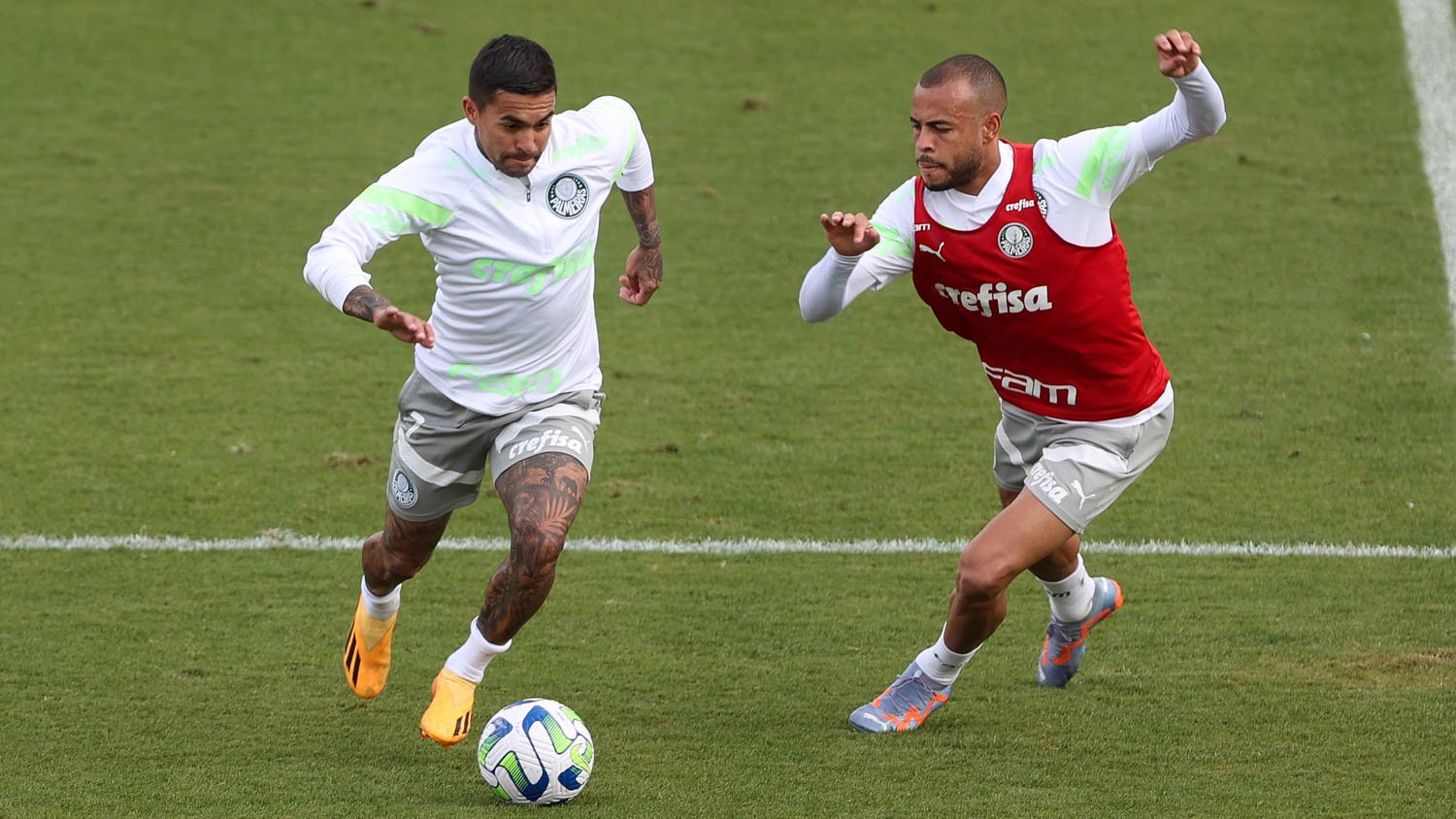 No campo, os jogadores que não atuaram por mais de 45 minutos ou não viajaram para Curitiba (PR), onde o Verdão empatou por 2 a 2 com o Athletico-PR no domingo, fizeram uma atividade técnica de 11 contra 11 contando com jovens do grupo de apoio. Na parte final, alguns atletas aprimoraram ainda cruzamentos laterais e finalizações. Os titulares da última partida fizeram atividades de recovery na parte interna do centro de excelência.