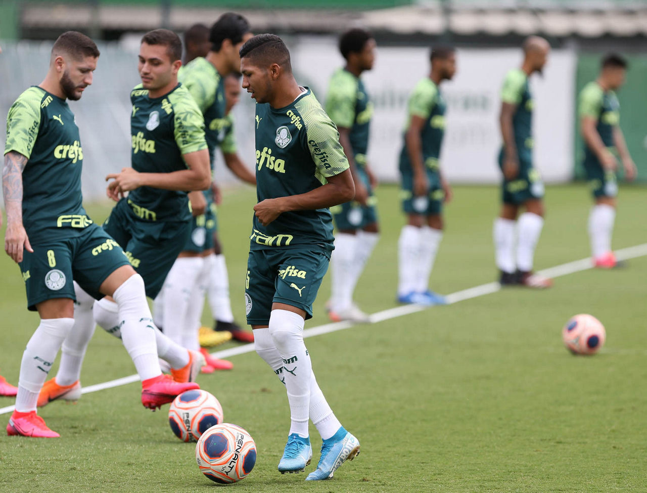 O Palmeiras treinou na manhã desta terça-feira (25), na Academia de Futebol, em preparação para o clássico contra o Santos, no sábado (2), às 16h, no estádio do Pacaembu, pelo Campeonato Paulista. Esta foi somente a primeira atividade do dia, já que os atletas almoçarão e descansarão no centro de treinamento (no chamado day use) visando o treino da tarde.