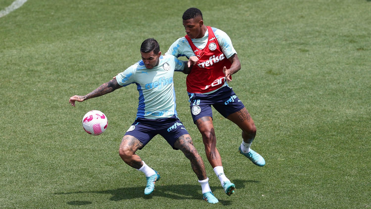 O Palmeiras realizou atividades técnicas e táticas na manhã desta sexta-feira (14), na Academia de Futebol, dando sequência à preparação para o clássico contra o São Paulo deste domingo (16), às 16h, no Allianz Parque, pela 32ª rodada do Campeonato Brasileiro. Em um trabalho coletivo intenso, os jogadores repetiram aspectos ofensivos e defensivos como construções de jogadas e marcação pressão.