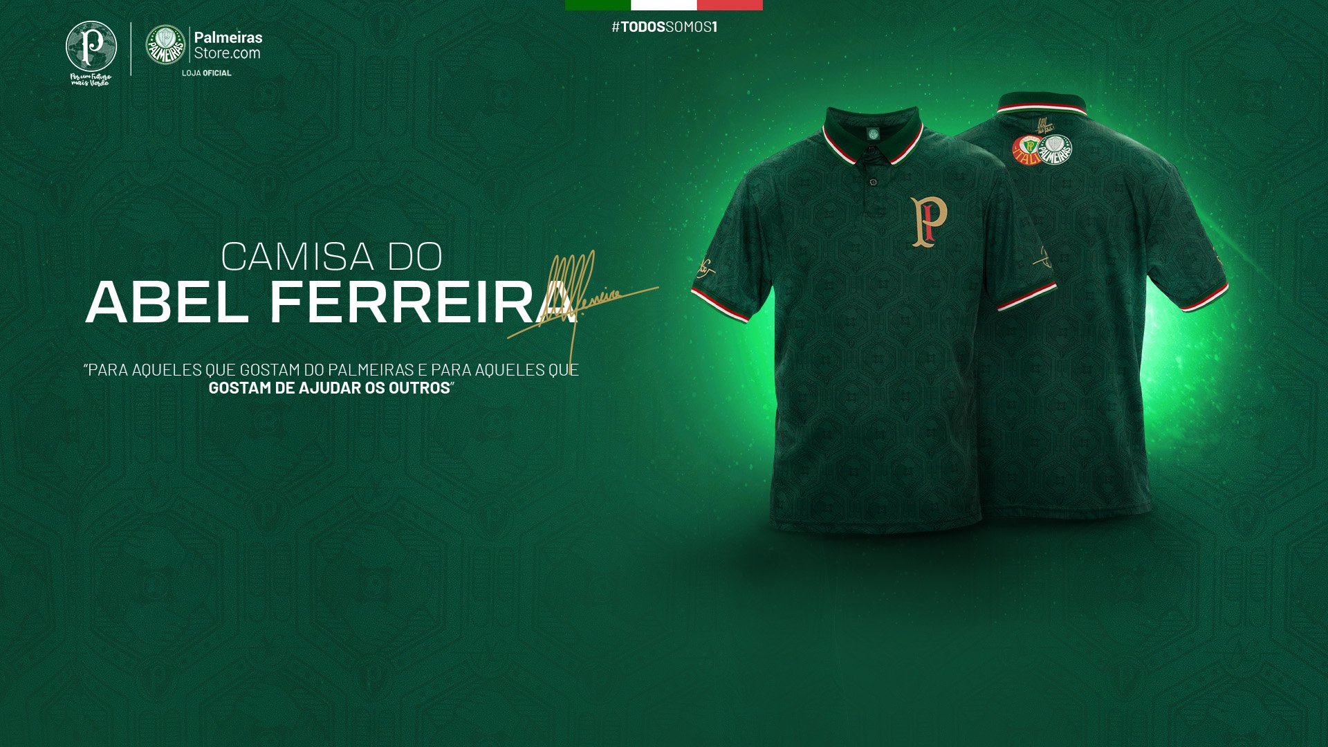 Um dos técnicos mais vencedores da história do Palmeiras, com incríveis seis títulos conquistados em dois anos de trabalho, Abel Ferreira agora possui uma camisa especial produzida em sua homenagem. Desenhada pelo próprio treinador em conjunto com a agência de marketing digital Thunder Mustard e o Departamento de Marketing do clube, a peça tem a cor verde, os brasões do Palestra Italia e do Palmeiras, o autógrafo do comandante português e o desenho de quatro mãos segurando quatro braços como detalhes de fundo, formando um quadrado e simbolizando a união entre as pessoas, independentemente de gênero, raça ou credo. A renda obtida com as vendas será destinada a instituições de caridade, assim como ocorreu com o livro “Cabeça Fria, Coração Quente”.