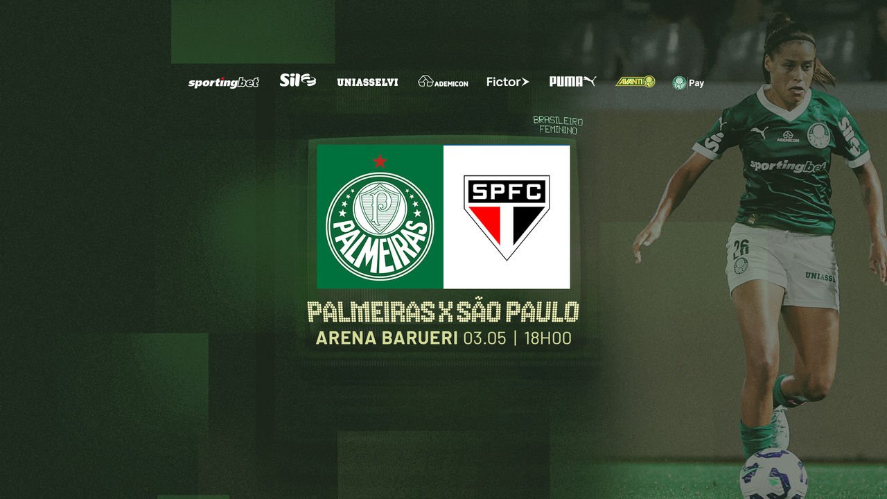 O Palmeiras mede forças com o São Paulo, neste sábado (03), às 18h, na Arena Barueri. O jogo, válido pela nona rodada do Brasileiro Feminino, será transmitida ao vivo pelo SporTV e os ingressos estão à venda no site ingressospalmeiras.com.br.