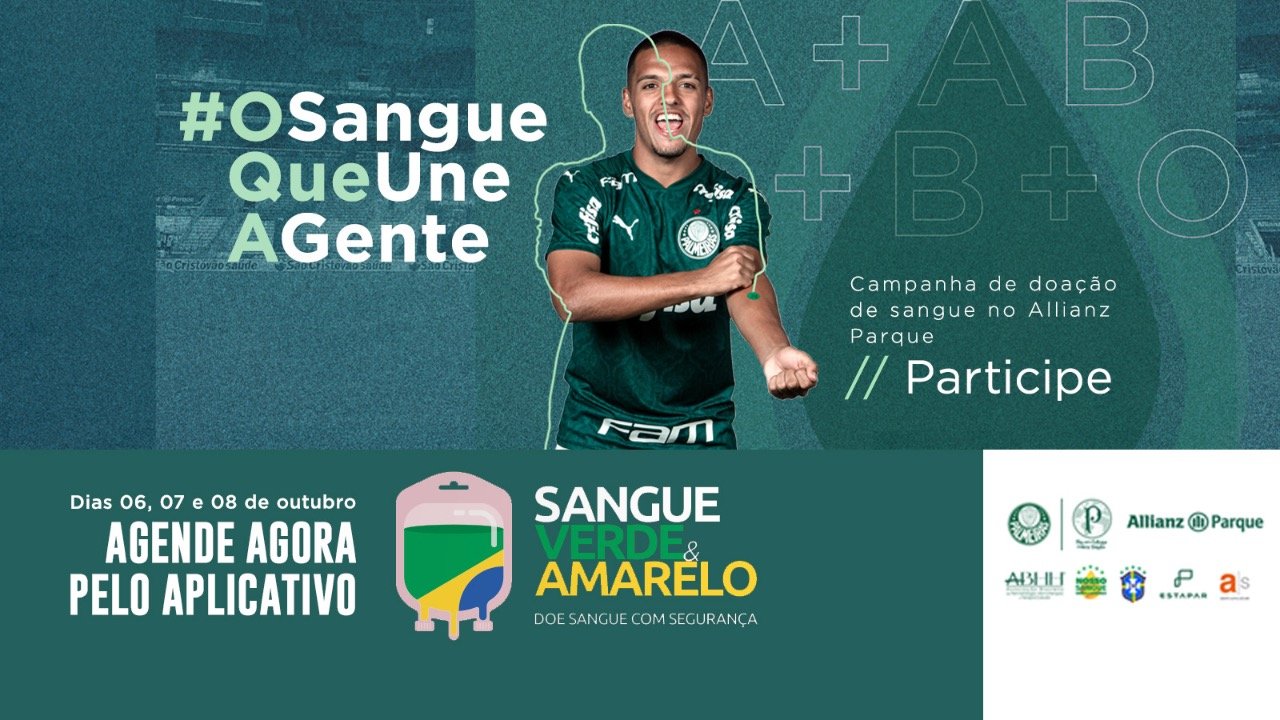 O Palmeiras, em parceria com a Associação Brasileira de Hematologia, Hemoterapia e Terapia Celular (ABHH), a Confederação Brasileira de Futebol (CBF) e o Allianz Parque, realiza entre os dias 6 e 8 de outubro a segunda edição da campanha “Nosso Sangue Verde e Amarelo”, que possibilita a doação de sangue no estádio do Verdão.