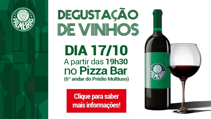 Palmeiras promove degustação de vinhos no Pizza Bar; garanta seu convite Postado em 3 de outubro de 2017 - 17:44 por admin-plm. Departamento de Comunicação