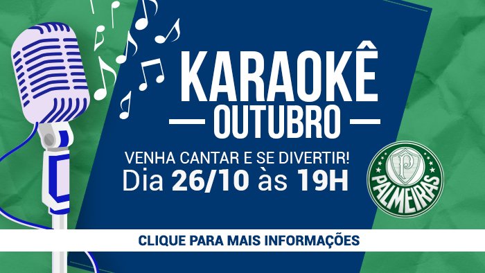 Palmeiras promove Karaokê no Restaurante Jardim Suspenso; venha cantar e se divertir Postado em 8 de outubro de 2018 - 11:15 por admin-plm. Departamento de Comunicação