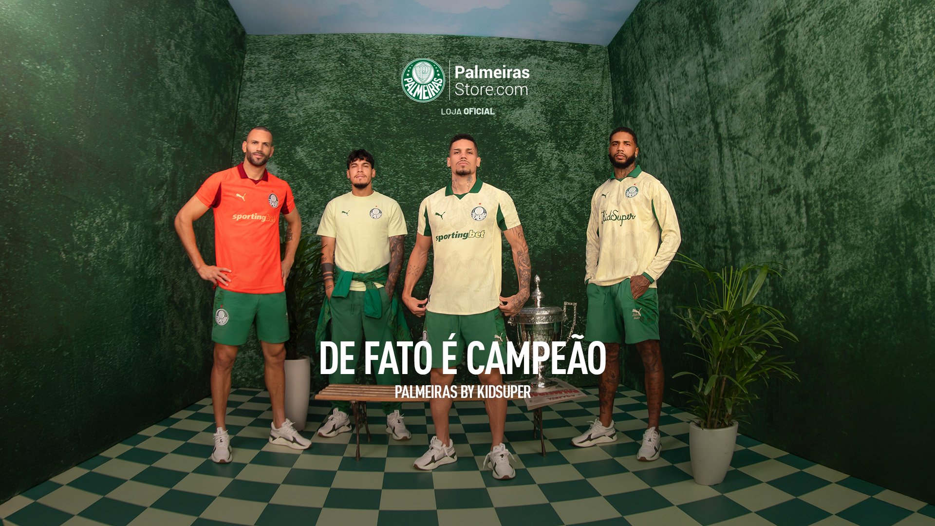 A coleção Palmeiras – PUMA x KIDSUPER estará disponível a partir desta terça-feira (10) nos sites PalmeirasStore.com e PUMA.COM e também nas lojas físicas da Palmeiras Store e da PUMA (Morumbi Shopping e Shopping Metrô Tatuapé).
