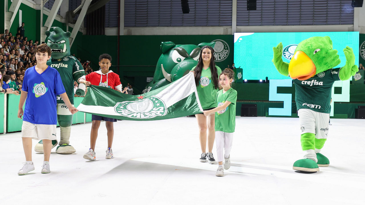A bandeira palmeirense, acompanhada das equipes Sub-9, Sub-11 e Sub-13 de futsal da Coordenadoria Sócio-Desportiva do clube, entrou no ginásio seguida de centenas de crianças representando suas respectivas equipes (verde, azul, branco e vermelho). Na sequência, tiveram início as apresentações de alunos e atletas de diversas modalidades esportivas do Palmeiras.