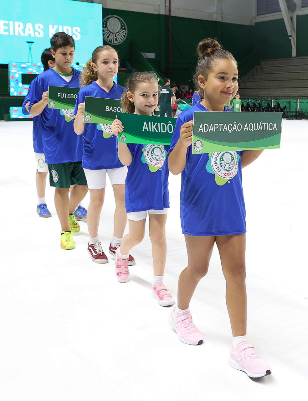 A Sociedade Esportiva Palmeiras deu início a mais uma edição da tradicional Olimpíada da Criança nesta sexta-feira (07), no ginásio do Palestra Italia, após dois anos sem poder realizar o tradicional evento, devido a pandemia de Covid-19, a cerimônia de abertura contou com a presença do lateral-esquerdo Joaquín Piquerez, do atacante Endrick e do técnico Abel Ferreira. Cerca de mil crianças estão com participação garantida na 32ª edição da competição, que tem como intuito difundir a prática esportiva entre associados mirins do clube social.