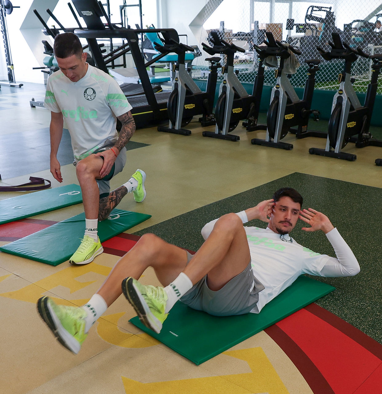 Após vídeo tático no auditório e ativação muscular no centro de excelência, os atletas foram a campo e fizeram uma atividade tática com ênfase em posicionamentos, marcações, transições e ensaios específicos. Por fim, houve um recreativo descontraído e, antes da ida ao vestiário, alguns jogadores aprimoraram cobranças de faltas. Assim como na sexta-feira (01), o lateral-direito Mayke treinou em tempo integral com os companheiros, enquanto Dudu, Gómez e Bruno Rodrigues cumpriram cronograma com o Núcleo de Saúde e Performance.