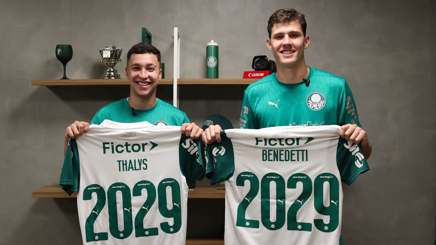 Nesta semana, o Verdão também renovou os contratos de Benedetti e Thalys – ambos válidos agora até dezembro de 2029. Aos 18 anos, o defensor de 1,98m tem seis jogos disputados pelo clube, sendo quatro como titular. “Primeiramente, tenho de agradecer muito a Deus por cada vez mais me dar essas oportunidades. Fico muito feliz porque nós que subimos agora da Base estamos tendo um reconhecimento e estamos cada vez mais nos preparando para desfrutar de tudo. Vamos em busca de mais jogos e títulos, se Deus quiser. Minha família também ficou muito feliz porque desde pequeno eu sou palmeirense, então é uma segurança para todos nós. Se Deus quiser, ainda temos muito pela frente”, disse Benedetti.