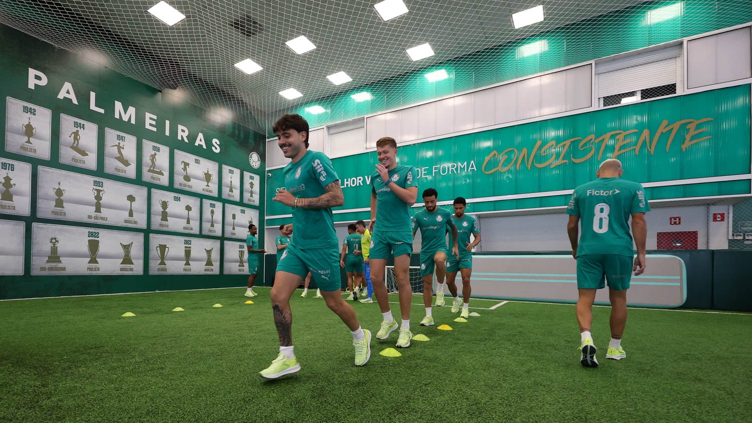 O Palmeiras se reapresentou na manhã desta segunda-feira (06), na Academia de Futebol, horas depois da vitória por 3 a 2 sobre o São Paulo, na tarde domingo (05), no Morumbis, pelo Campeonato Brasileiro. Os titulares e os que jogaram pelo menos 45 minutos na virada no Choque-Rei fizeram atividades regenerativas no centro de recovery e neurociência, enquanto os demais atletas (Bruno Rodrigues, Micael, Jefté e os goleiros do elenco) realizaram trabalhos técnicos com a comissão de Abel Ferreira no gramado.
