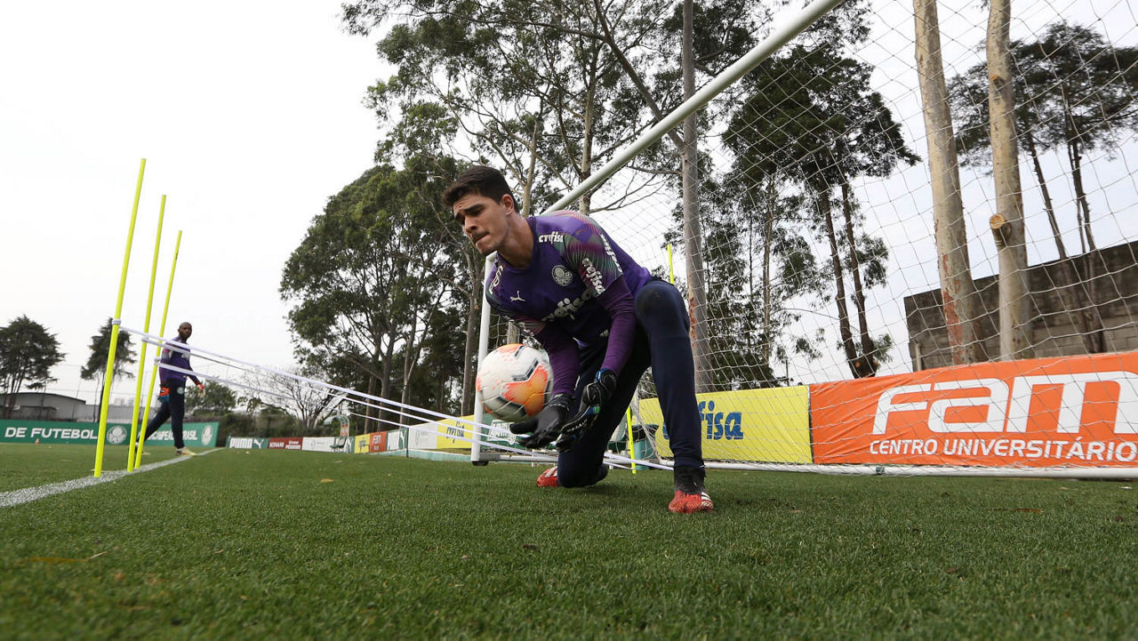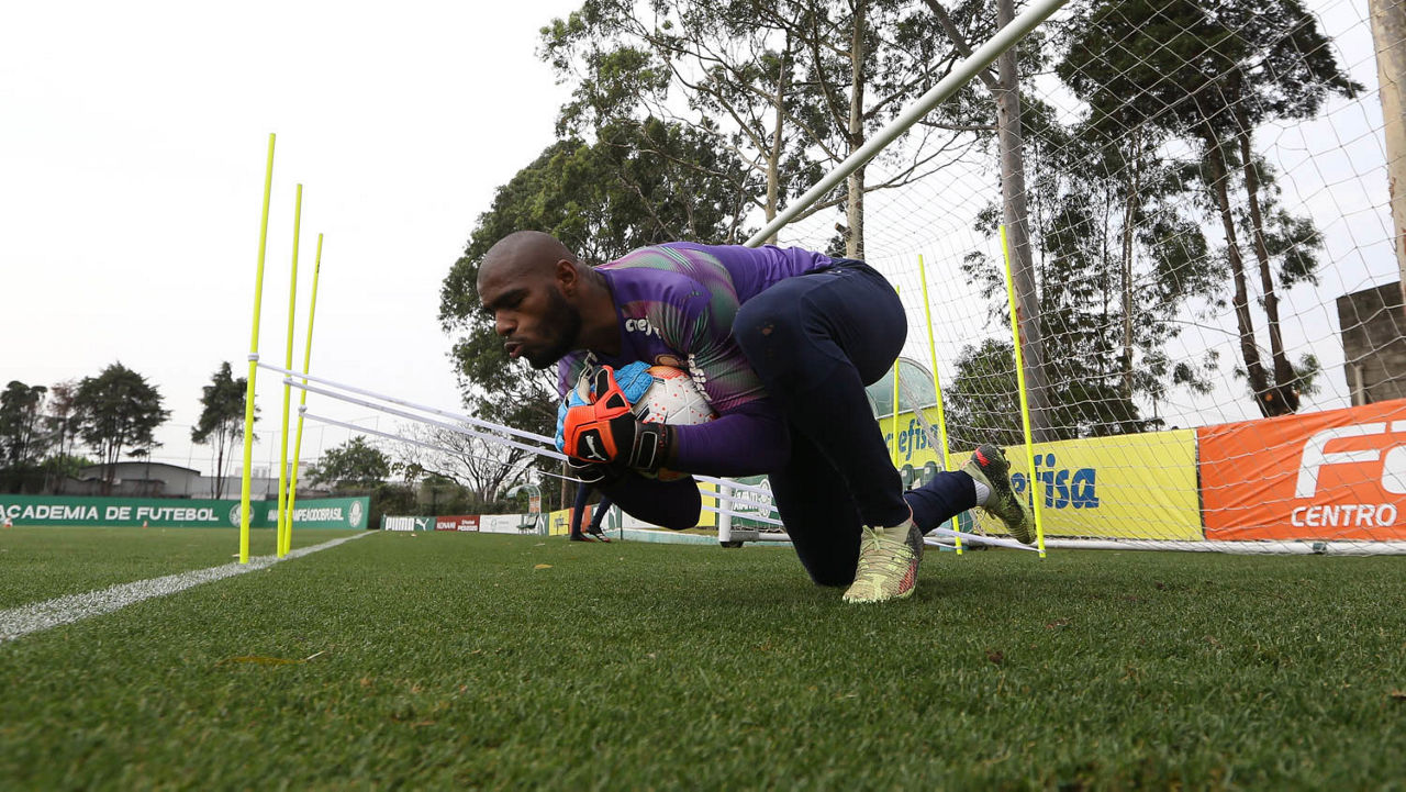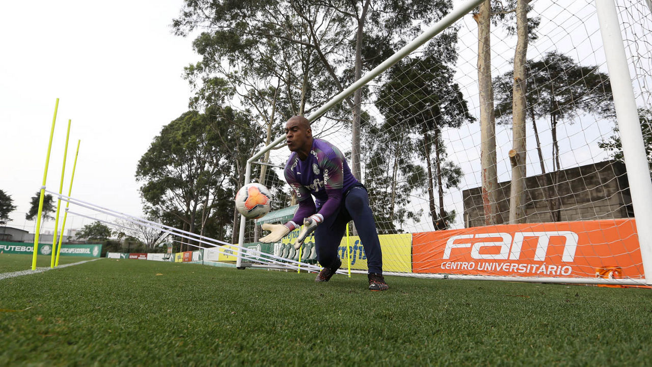 O goleiro Weverton durante treinamento na Academia de Futebol (Foto: Cesar Greco/Palmeiras)