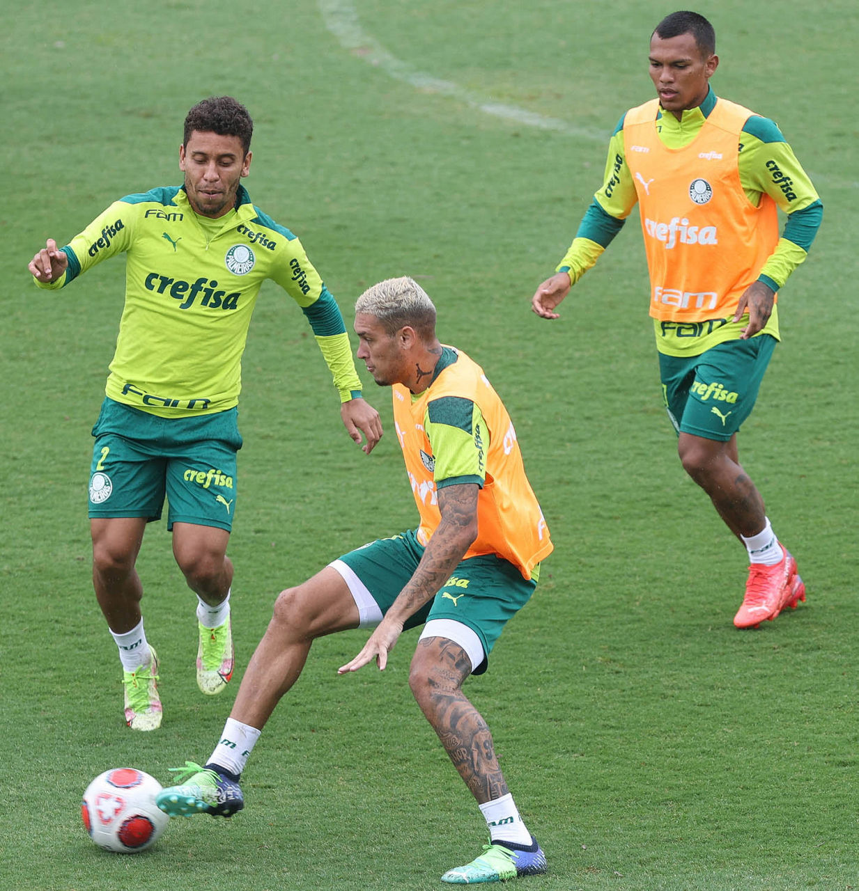 No campo, o técnico Abel Ferreira dividiu o treino em três partes. Na primeira, os jogadores fizeram um trabalho de posse de bola e marcação em campo reduzido. Depois, na parte tática, ensaiaram construção de jogadas – os jogadores com maior desgaste do jogo contra o São Bernardo deixaram o campo após um complemento físico à parte. Para fechar, os demais atletas foram divididos em dois grupos para atividades específicas de ataque e defesa.