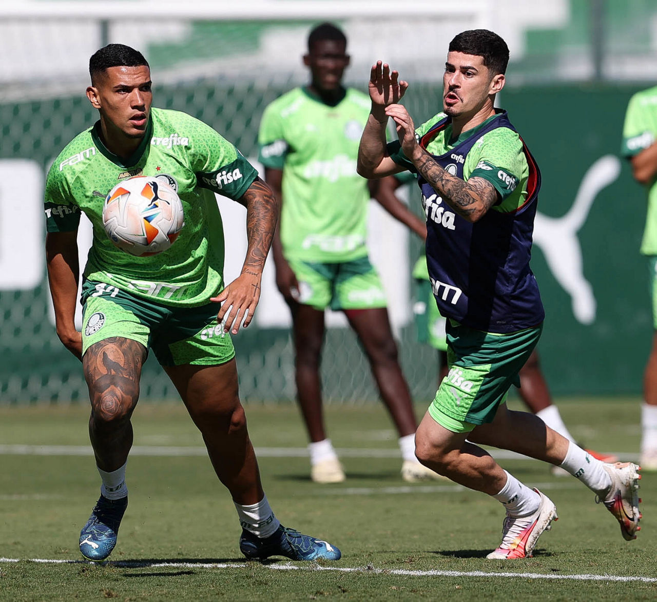 Os titulares no domingo fizeram atividades de recovery na parte interna do centro de excelência. O restante foi a campo e realizou trabalhos técnicos com objetivos específicos. Crias das categorias de base completaram tanto as movimentações com o grupo quanto o treino à parte de Dudu e Bruno Rodrigues, que, assim como o camisa 7, avançou no processo de recuperação e passará a ter um cronograma sozinho e outro gradativo com bola com os companheiros.